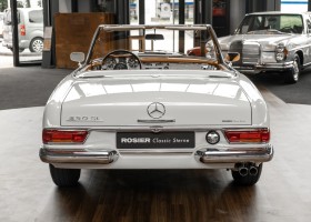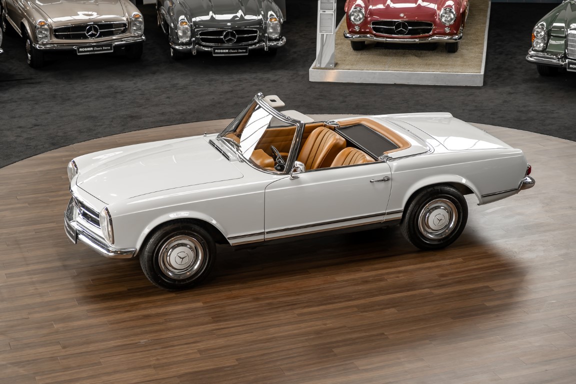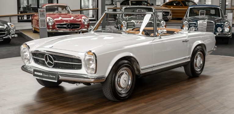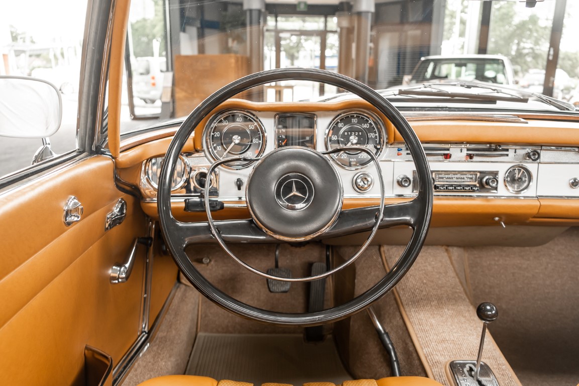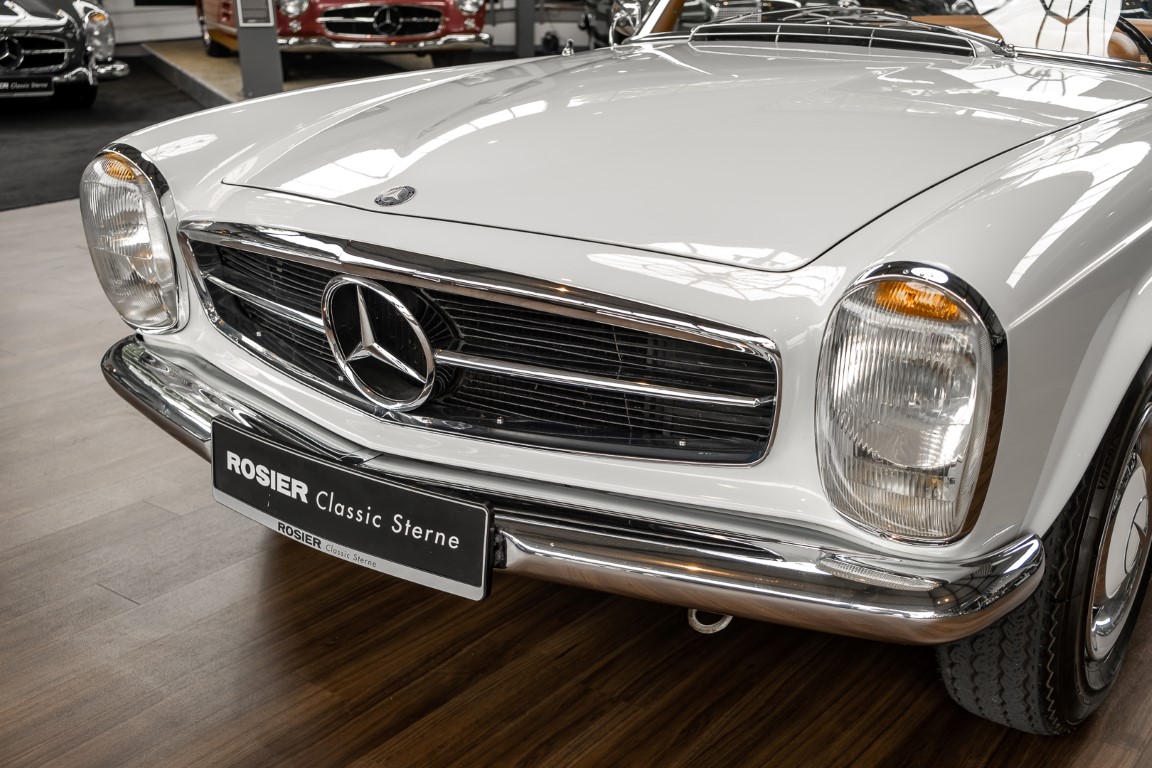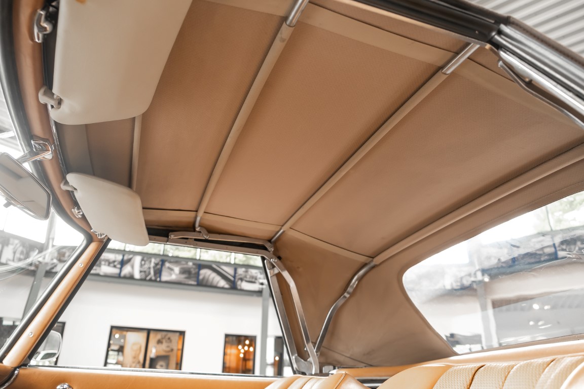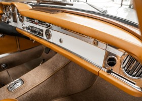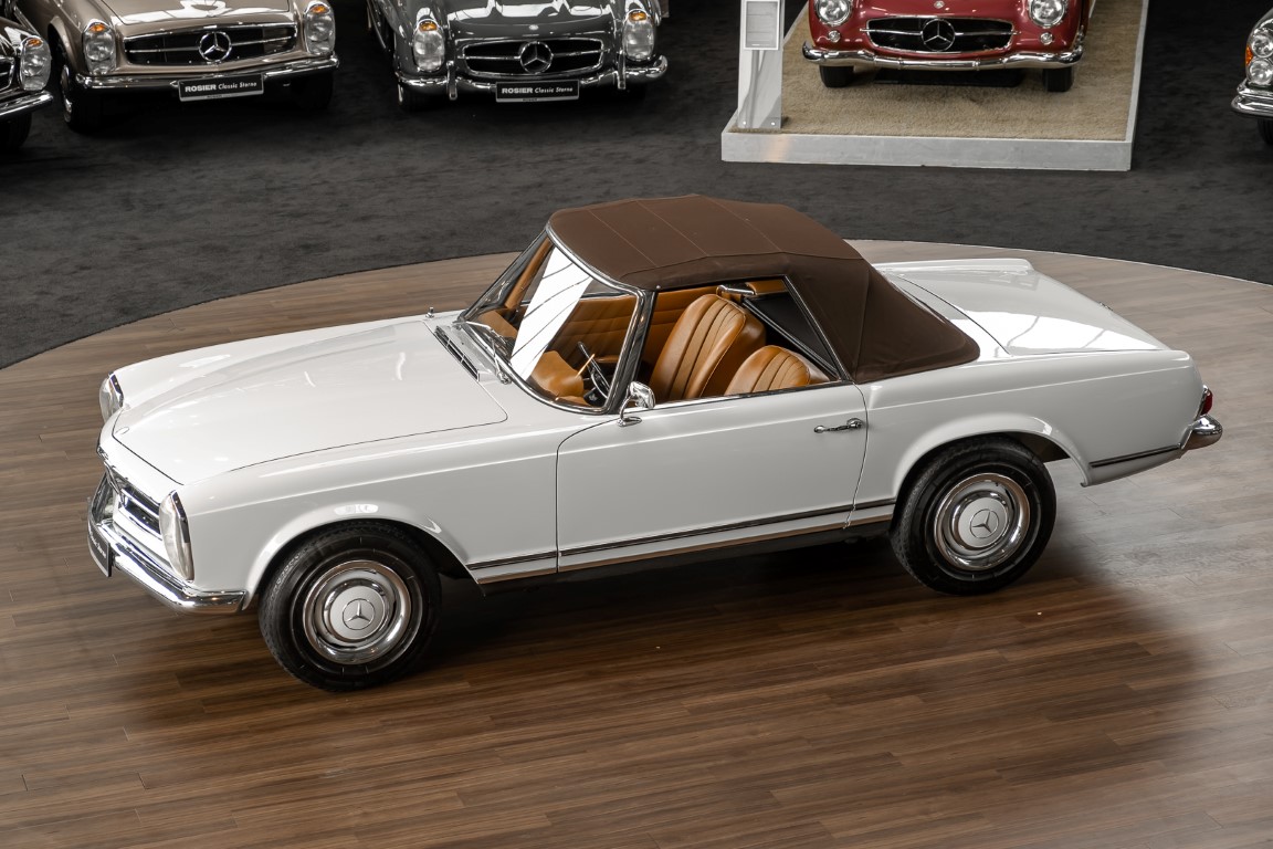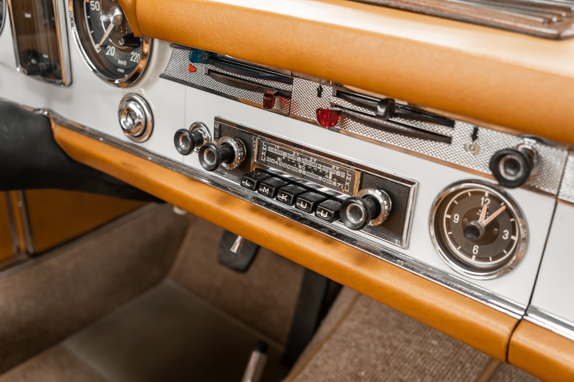 Eine wahrhaft einzigartige 230 SL Pagode können wir Ihnen mit diesem Traumroadster in klassischem Papyrusweiss mit braunem Kunstleder anbieten. Nicht mehr oft wird man eine solch originale und toperhaltene Pagode finden. Dem originalen Kundendienstheft ist zu entnehmen, dass das Fahrzeug am 17.11.1966 an seinen Besitzer in die französische Metropole Paris, genauer gesagt in die Gemeinde Ivry-sur-Seine – etwa 7km südöstlich des Pariser Stadtzentrums, geliefert wurde. Den lückenlosen Einträgen zufolge verblieb das Fahrzeug bis 1978 in Paris. Einträge aus Nizza und Monaco zeugen von ausgiebigen Reisen an die malerische Côte d’Azur, in dessen Umgebung sich dieser Klassiker wohl bestens eingefunden hat.