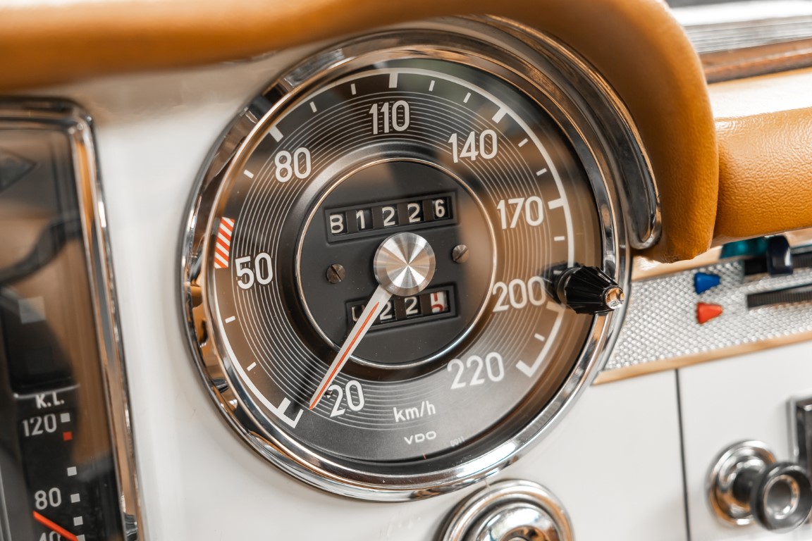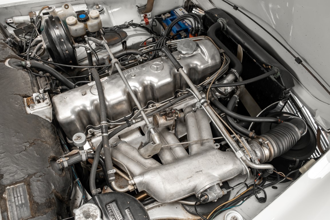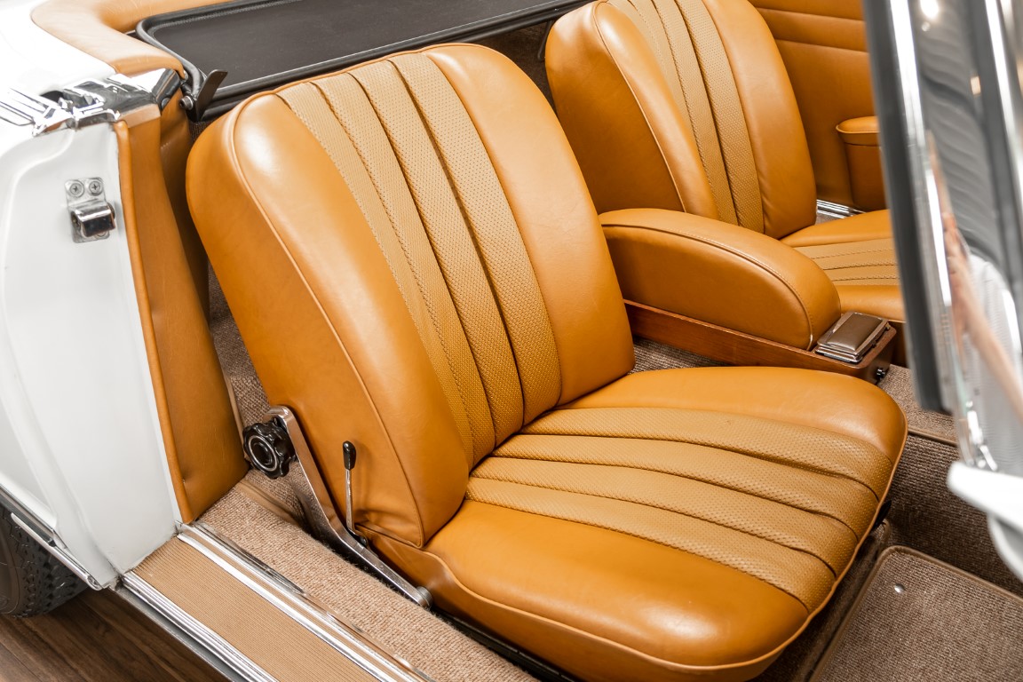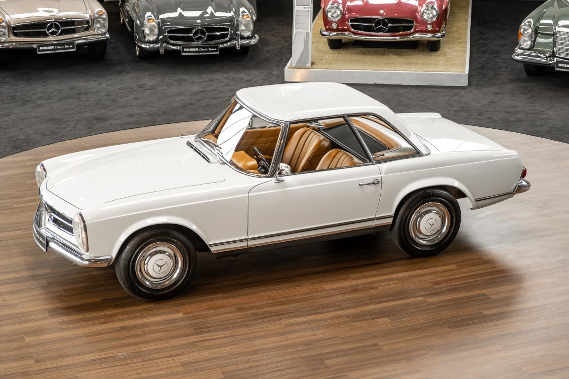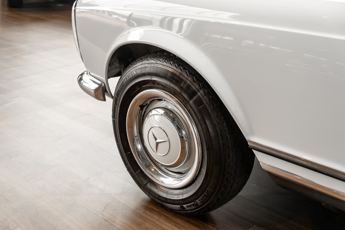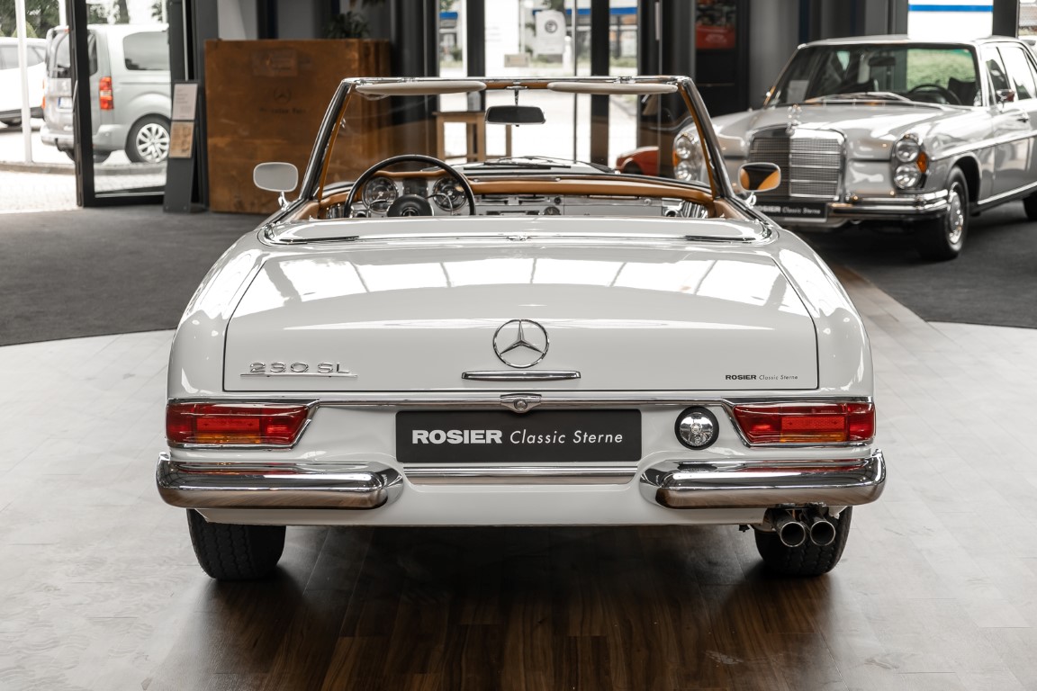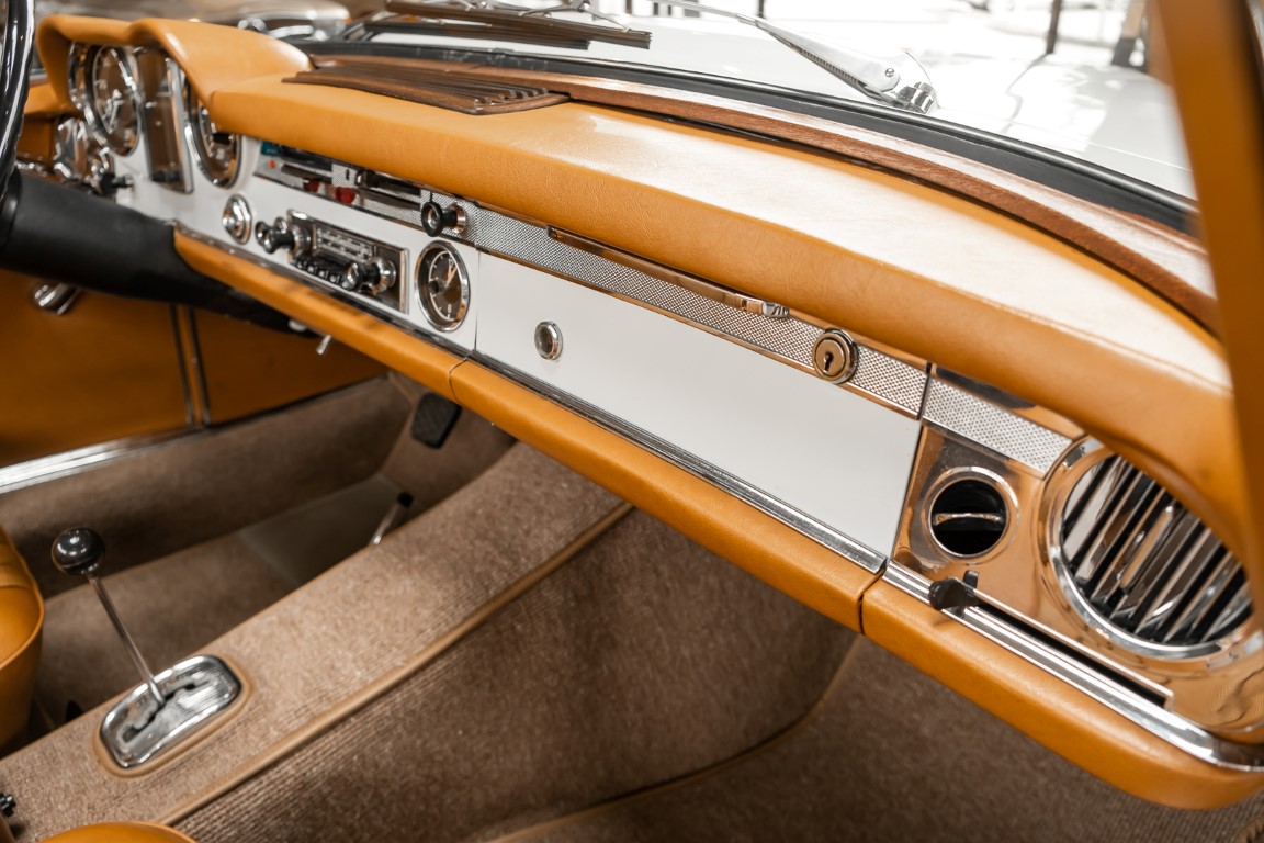 Eine wahrhaft einzigartige 230 SL Pagode können wir Ihnen mit diesem Traumroadster in klassischem Papyrusweiss mit braunem Kunstleder anbieten. Nicht mehr oft wird man eine solch originale und toperhaltene Pagode finden. Dem originalen Kundendienstheft ist zu entnehmen, dass das Fahrzeug am 17.11.1966 an seinen Besitzer in die französische Metropole Paris, genauer gesagt in die Gemeinde Ivry-sur-Seine – etwa 7km südöstlich des Pariser Stadtzentrums, geliefert wurde. Den lückenlosen Einträgen zufolge verblieb das Fahrzeug bis 1978 in Paris. Einträge aus Nizza und Monaco zeugen von ausgiebigen Reisen an die malerische Côte d’Azur, in dessen Umgebung sich dieser Klassiker wohl bestens eingefunden hat.