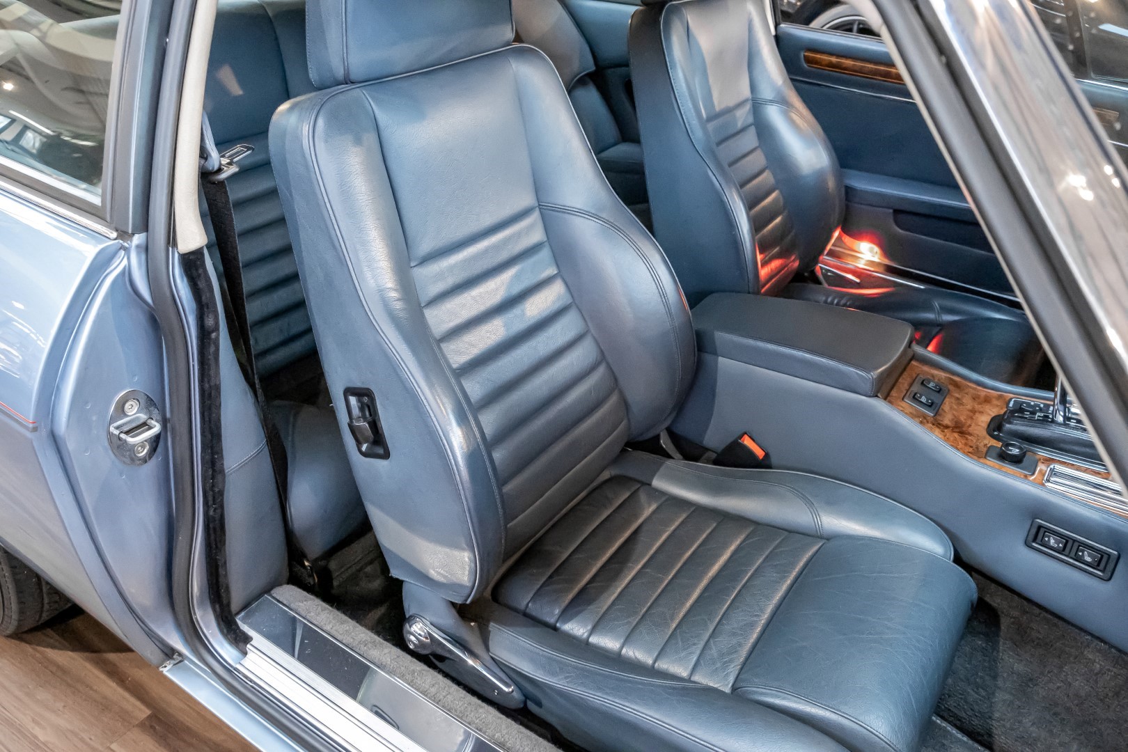Wir freuen uns Ihnen dieses wundervolle Exemplar aus dem Jahre 1988 anbieten zu können. Im passenden Farbton Arcticblue Metallic in Kombination mit Leder in Isisblau zeigt sich das V12 Coupé von seiner allerbesten Seite. Das Fahrzeug wurde erst vor kurzem aus der erlesenen Sammlung des japanischen Erstbesitzers herausgekauft und nach Deutschland exportiert. Mit gerade einmal 26.600 km befindet sich das Fahrzeug in einem herausragenden Zustand. Technisch und optisch betrachtet besteht kein Grund zum Zweifel an dieser sensationell geringen Laufleistung. Auch das vorliegende Classic Data Gutachten bestätigt diesen Eindruck. Üppig ausgestattet mit Klimaanlage, Bordcomputer, Tempomat, elektrischen Fensterhebern und Seitenspiegeln sowie Lederausstattung und Sitzheizung lässt es sich mit diesem V12-Luxus-Coupé phantastisch dahingleiten. Mit 264 PS tritt diese Raubkatze aber auch erstaunlich kräftig an. Die Symbiose aus beiden Welten macht diesen Wagen zu einem absoluten Traumwagen. Steigen Sie ein und erfahren es selbst.