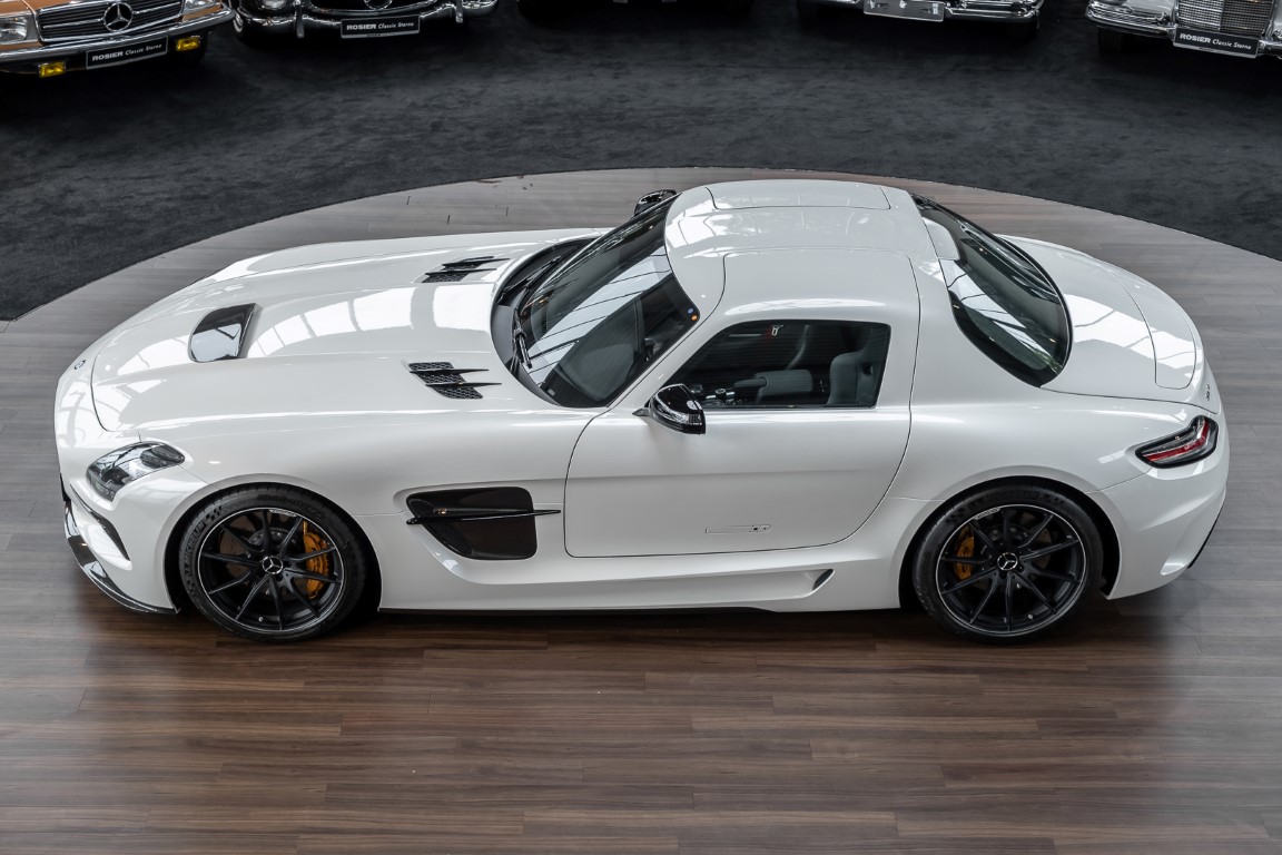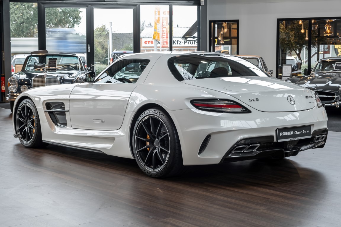 Im Juni 2013 war der offizielle Verkaufsstart der Highend-Version des Flügeltürers, den SLS AMG Coupé Black Series. Wer dieses von der Rennversion SLS AMG GT3 inspirierte Supersport-Coupé haben wollte, musste schnell sein: Denn die gerade einmal 408 Einheiten wurden von Sammlern aus der ganzen Welt sehnsüchtig erwartet und waren unverzüglich ausverkauft. Das fünfte Black Series-Modell von Mercedes-AMG faszinierte seine Liebhaber durch atemberaubendes Design, überragende Fahrdynamik und konsequenten Leichtbau. Mit einem Leergewicht von 1550 Kilogramm und einer Motorleistung von 631 PS bei 7400/min erreicht der SLS AMG Black Series ein Leistungsgewicht von 2,45 kg/PS. Damit wird der dynamischste straßenzugelassene Flügeltürer in nur 3,6 Sekunden auf Tempo 100 katapultiert.