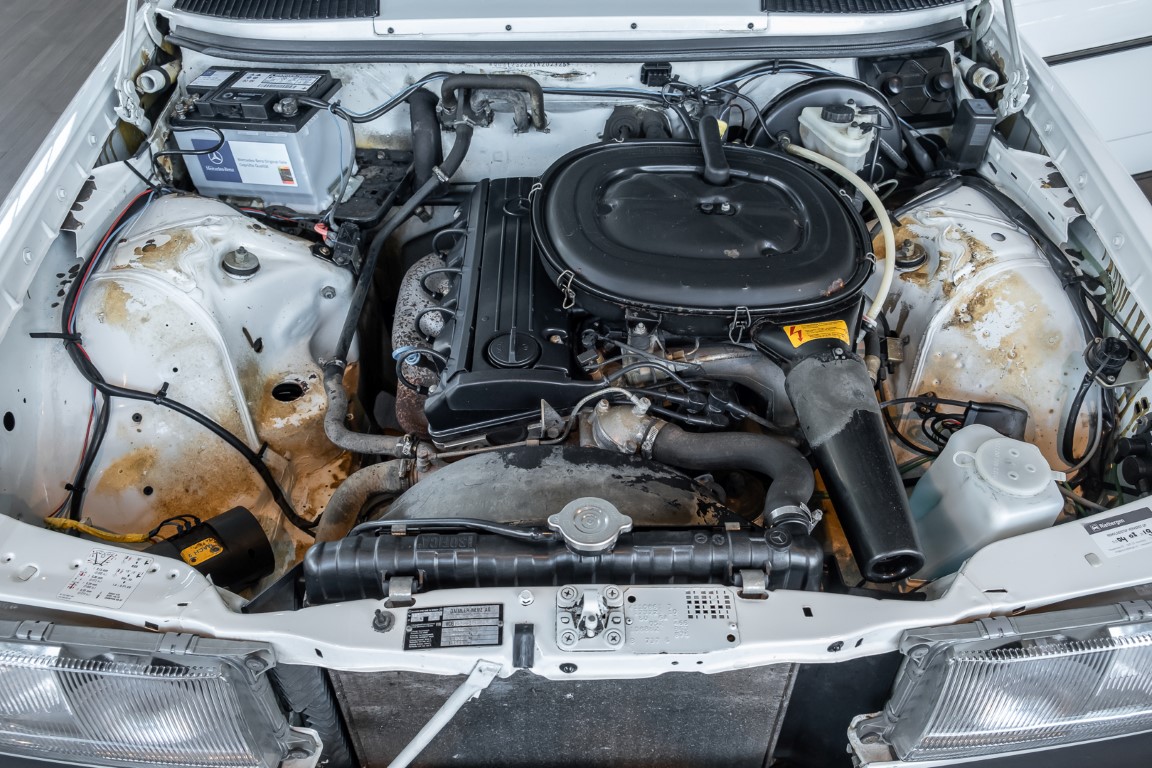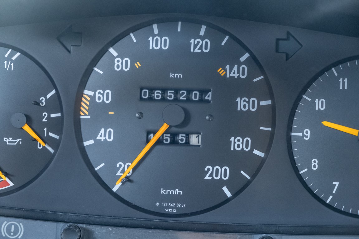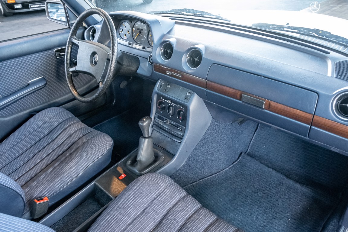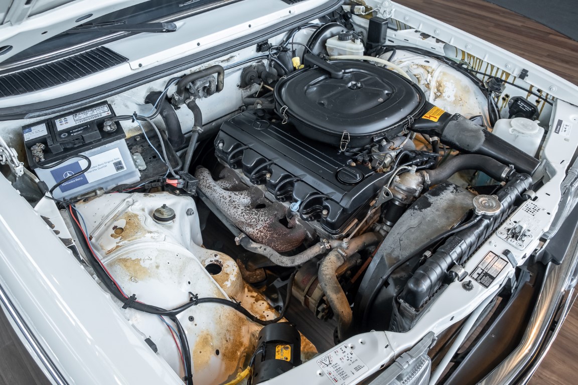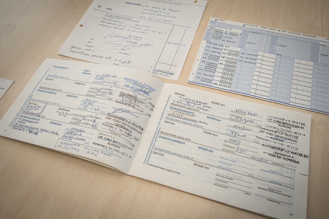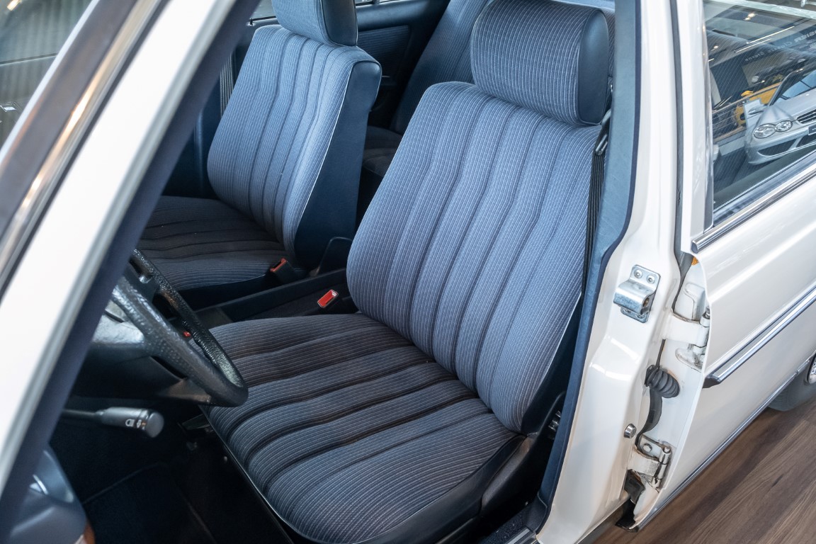 Dieser wundervolle 230 E im passenden Farbton Classicweiß stammt aus dem letzten Baujahr 1985 und ist mit dem robusten 2,3l-Vierzylinder ausgestattet. Am 17.07.1985 wurde das Fahrzeug durch seinen Erstbesitzer, einen Herren aus Woudrichem im Niederländischen Nordbrabant, zugelassen. Über viele Jahre und Jahrzehnte hinweg wurde das Fahrzeug stets gehegt und gepflegt. Das Serviceheft ist lückenlos gepflegt und nachvollziehbar. Sogar die original Datenkarte sowie die Originalrechnung sind noch vorhanden. Der „Tellerrapport“, also der Zählerreport, zeigt eindrücklich, wie wenig das Fahrzeug in den letzten knapp 27 Jahren bewegt wurde.