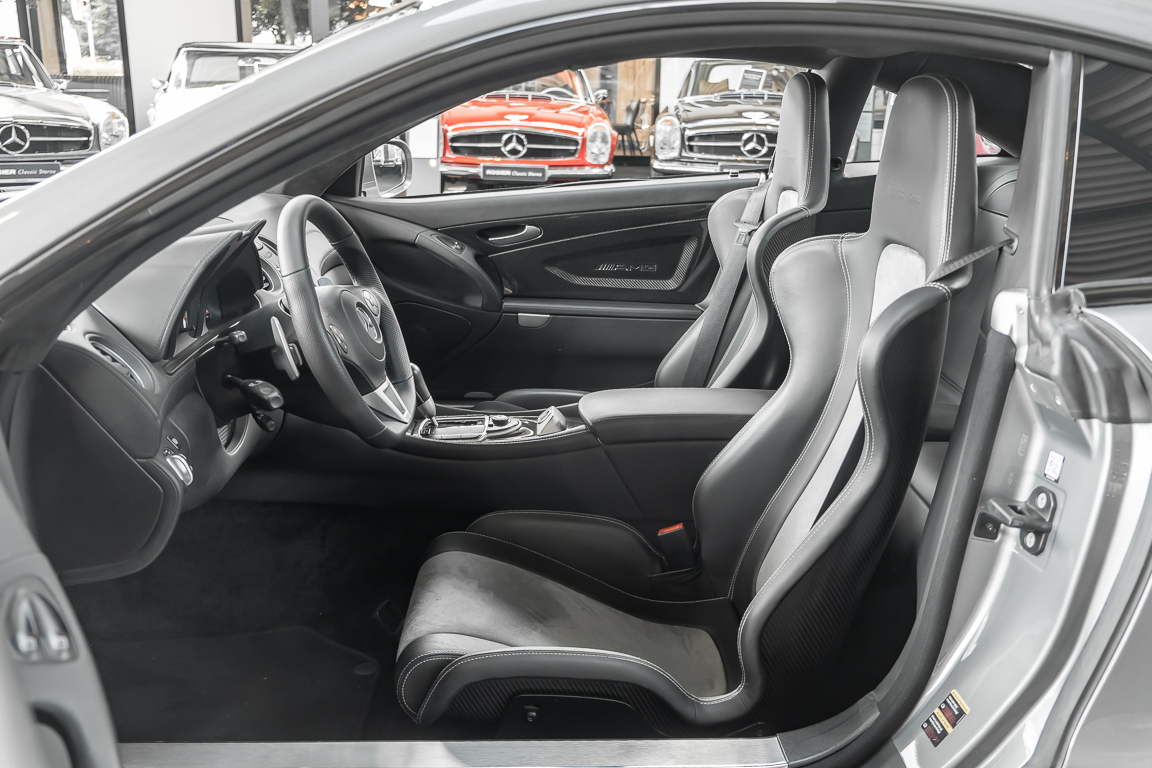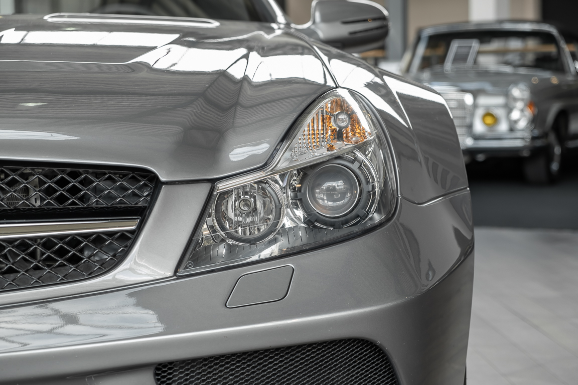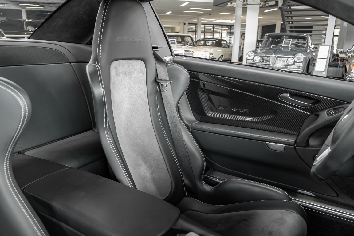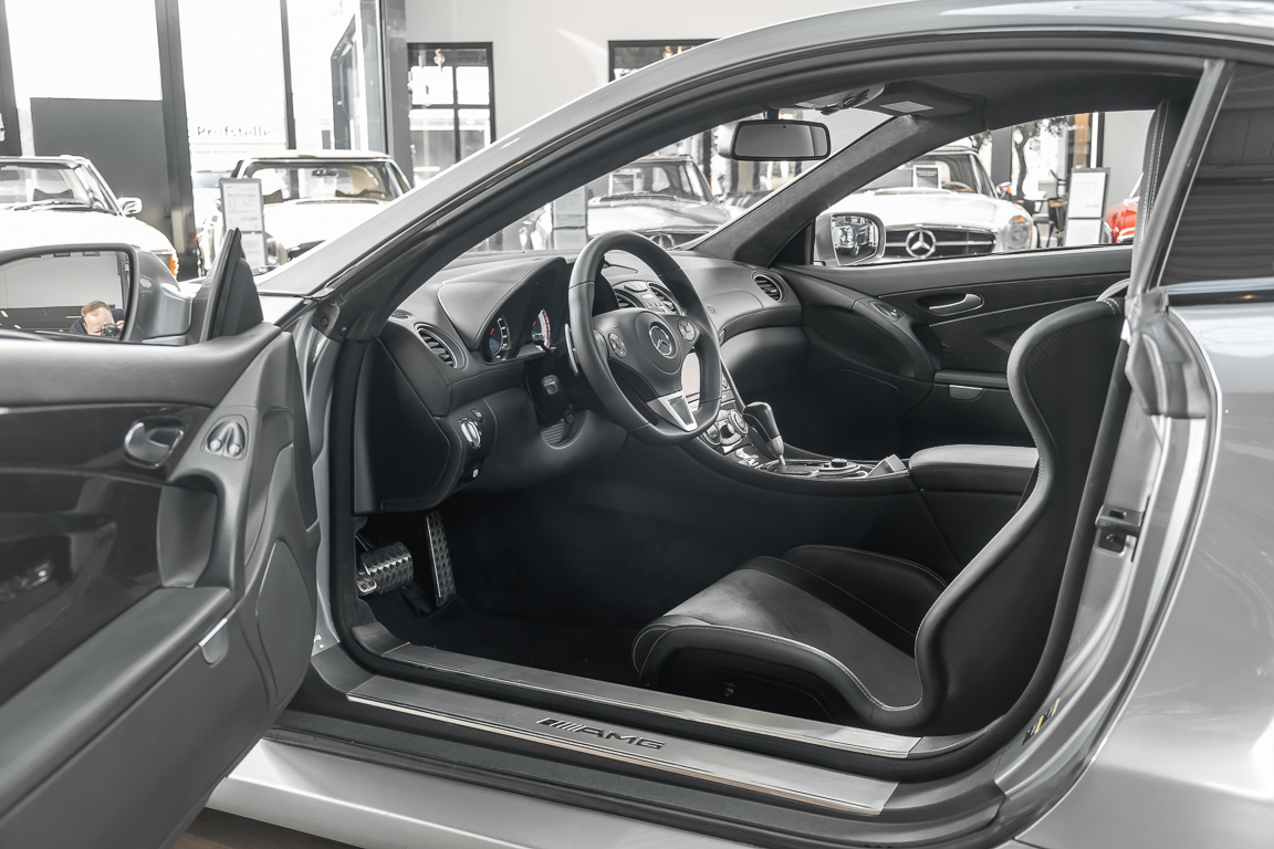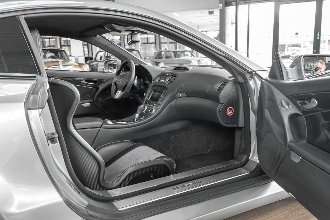 Wir freuen uns, Ihnen diesen SL 65 AMG Black Series im raren Farbton Palladiumsilber Metallic anbieten zu dürfen. Das Fahrzeug fand seinen Erstbesitzer in den Niederlanden. Der gepflegte und gewartete Wagen besticht durch eine perfekte Optik die dank Schutzfolie an der Frontpartie nicht durch unschöne Steinschläge geschmälert wurde. In unserer Manufaktur wurden unlängs ein großer Service sowie neue Bremsen spendiert, sodass der neue Besitzer seine ungetrübte Freude an dieser Fahrmaschine haben wird. Ein ungezähmtes Kraftpaket, das dank V12 Biturbo und einem Drehmoment von 1.000 Nm nicht nur pfeilschnell aussieht – es ist pfeilschnell. Steigen Sie ein und erfahren Sie es selbst.