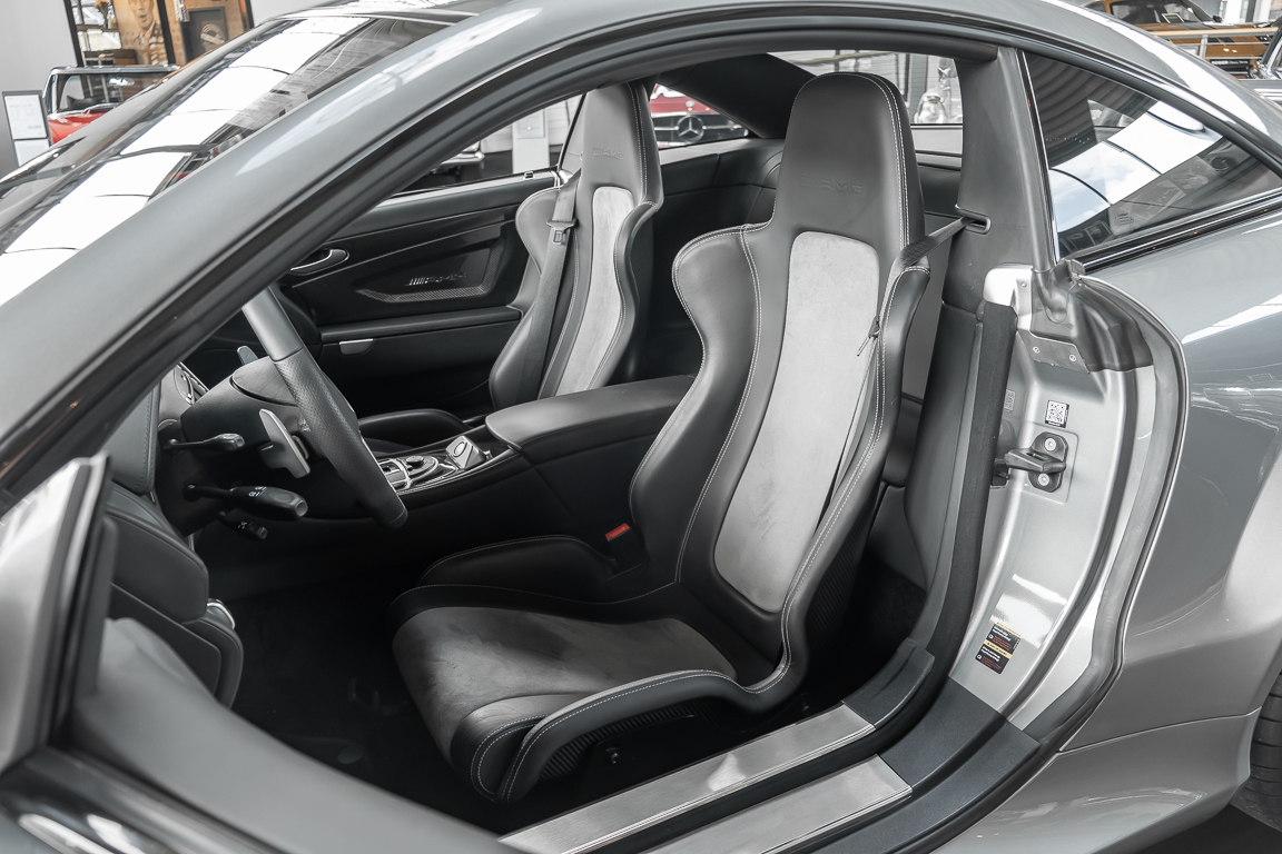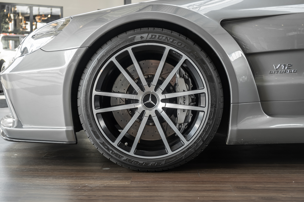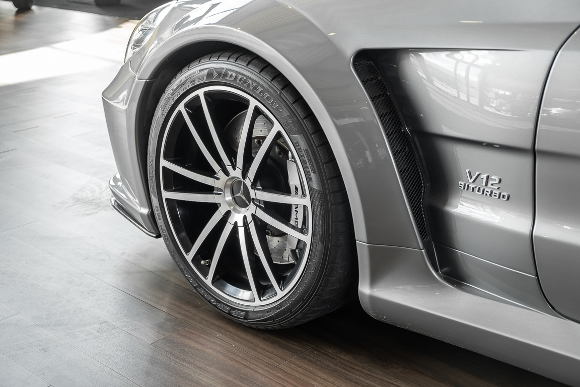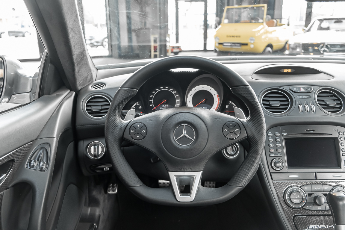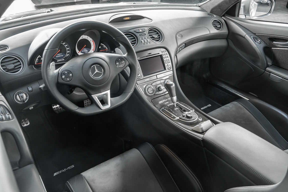 Wir freuen uns, Ihnen diesen SL 65 AMG Black Series im raren Farbton Palladiumsilber Metallic anbieten zu dürfen. Das Fahrzeug fand seinen Erstbesitzer in den Niederlanden. Der gepflegte und gewartete Wagen besticht durch eine perfekte Optik die dank Schutzfolie an der Frontpartie nicht durch unschöne Steinschläge geschmälert wurde. In unserer Manufaktur wurden unlängs ein großer Service sowie neue Bremsen spendiert, sodass der neue Besitzer seine ungetrübte Freude an dieser Fahrmaschine haben wird. Ein ungezähmtes Kraftpaket, das dank V12 Biturbo und einem Drehmoment von 1.000 Nm nicht nur pfeilschnell aussieht – es ist pfeilschnell. Steigen Sie ein und erfahren Sie es selbst.