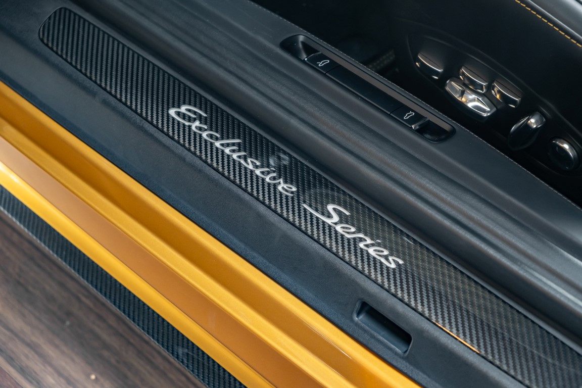 In der hauseigenen Manufaktur Porsche Exklusive veredelten die Zuffenhausener ab 2017 lediglich 500 Porsche 991 Turbo S in der streng limitierten „Exklusive Series“. Mit einem Werksleistungskit legt der 3,8-Liter-Biturbo-Boxermotor um 27 auf 607 PS zu. Das maximale Drehmoment des Sechszylinders wird mit 750 Nm angegeben. Damit soll der 911 Turbo S Exclusive Series in 2,9 Sekunden von 0 auf 100 km/h sprinten. Die 200 km/h-Grenze fällt nach 9,6 Sekunden. In der Spitze erreicht der Sportwagen 330 km/h. Fronthaube, Dach und Seitenschweller sind aus Carbon gefertigt und unterlagen einem intelligenten Leichtbaukonzept.