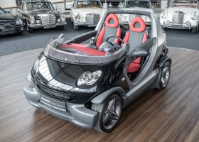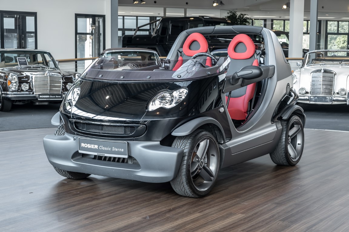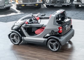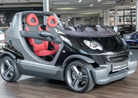 Der Smart Crossblade ist ganz sicher ein Fahrzeug für Individualisiten. Das in Kleinserie gebaute und auf 2000 Exemplare begrenzte Spaßmobil verspricht ein Fahrgefühl der ganz besonderen Art. Durch die offene Bauweise fühlt sich der Fahrer eher wie auf dem Motorrad, als in einem Auto. Die 70 Pferdestärken haben kaum Last mit dem 730 kg leichten Smart, der erst bei 135 km/h elektronisch begrenzt wird. Durch einen cleveren Materialmix kann auch regnerisches Wetter dem Fahrzeug nichts anhaben. Instrumententafel und Sitze sind mit einem wasserfesten feuerroten Kunststoff bezogen, der Boden des Innenraums ist wie eine Wanne gefertigt deren vier Ablaufkanäle bei starkem Regen das Wasser nach draußen leiten.