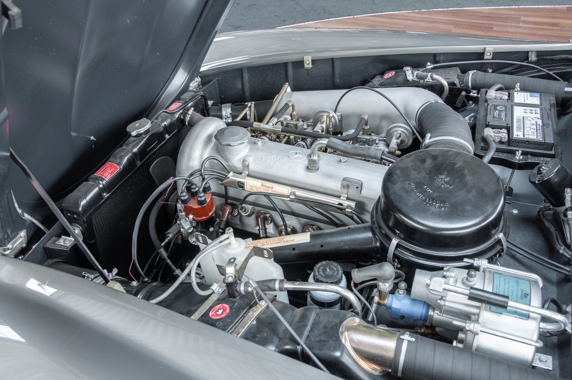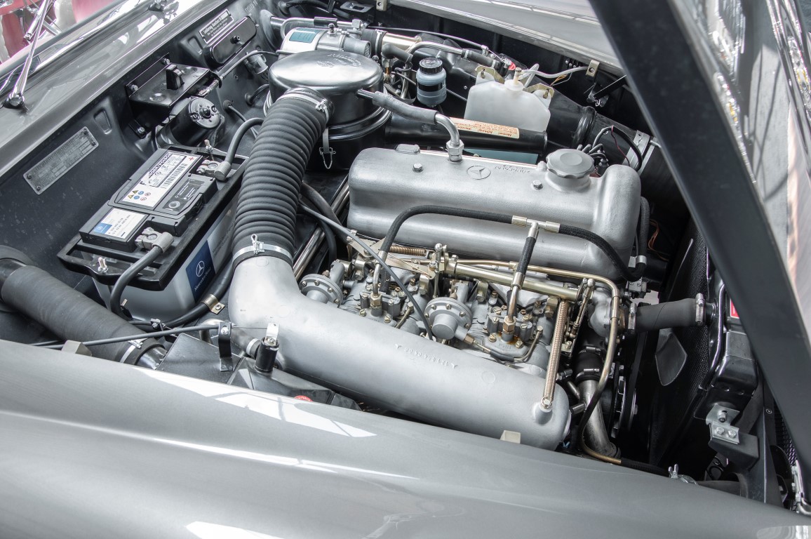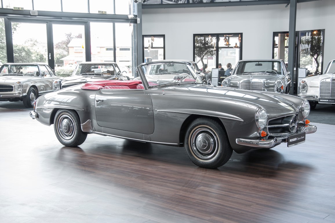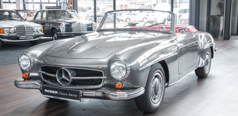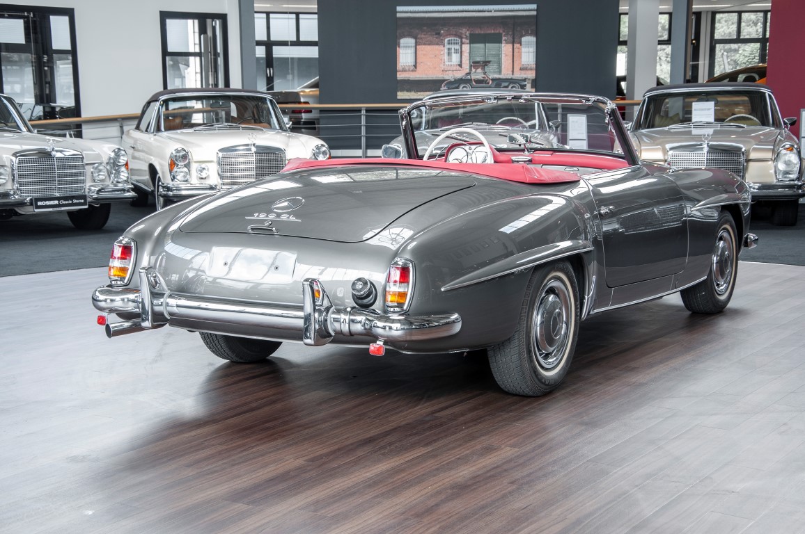 This highly elegant Mercedes-Benz 190SL Roadster was delivered in April 1959 to the general agent of Daimler-Benz, Joseph F. Weckerle, in Morocco, which had meanwhile become independent. He was a big fan of this elegant roadster series and liked to sell it to the wealthy upper class to which he maintained excellent contacts. He himself had already won the "Casablanca Grand Prix" in 1956 in a Mercedes-Benz 190SL touring sports car and had thus made a good name for himself. As a result, the roadster found its way to the USA. There it was very popular and was regarded as one of the most elegant vehicles of the 1950s and early 1960s. In 2011, the 190SL returned to its native country, Germany. A Mercedes specialist near the Swabian capital Stuttgart had acquired it. He subjected the 190SL Roadster to a detailed full restoration. The result of Swabian craftsmanship was fantastic. Everything presented itself as new. The colour scheme in the original Mercedes-Benz colour, DB 172 "anthracite grey metallic" in combination with dark red leather, made the 190SL look like its big brother the 300SL. A uniquely beautiful charisma. A prominent Swabian soon succumbed to the charm of this roadster and still owned the car today. Let yourself be captivated by the charm of this roadster, too, and soon start wonderful trips with the roof open and enjoy the friendly waving of many a participant in the traffic.