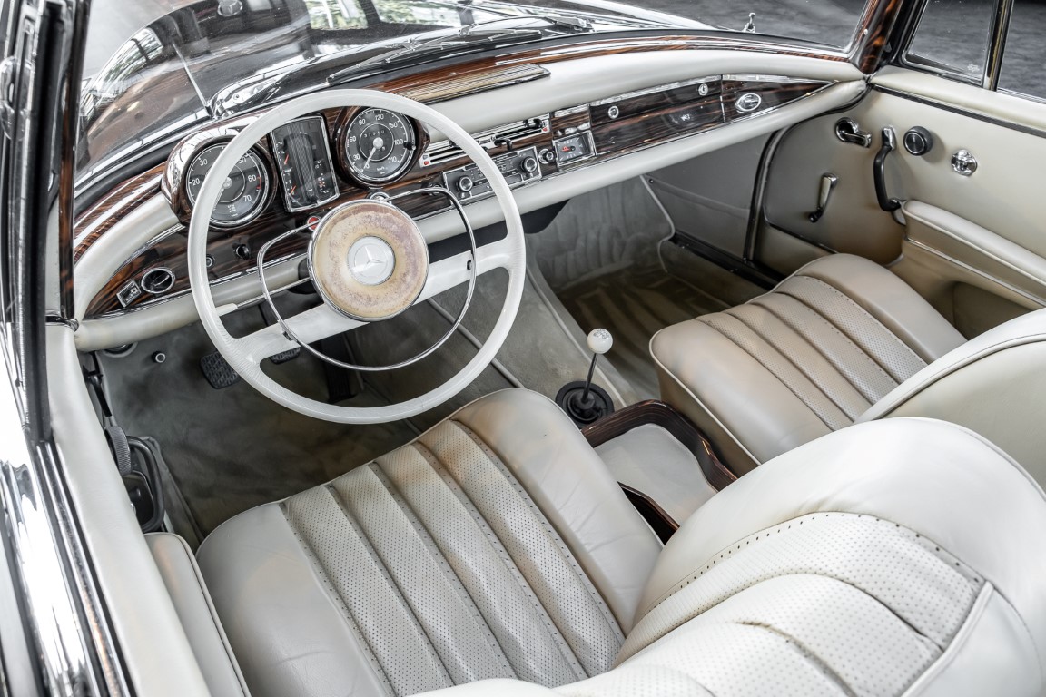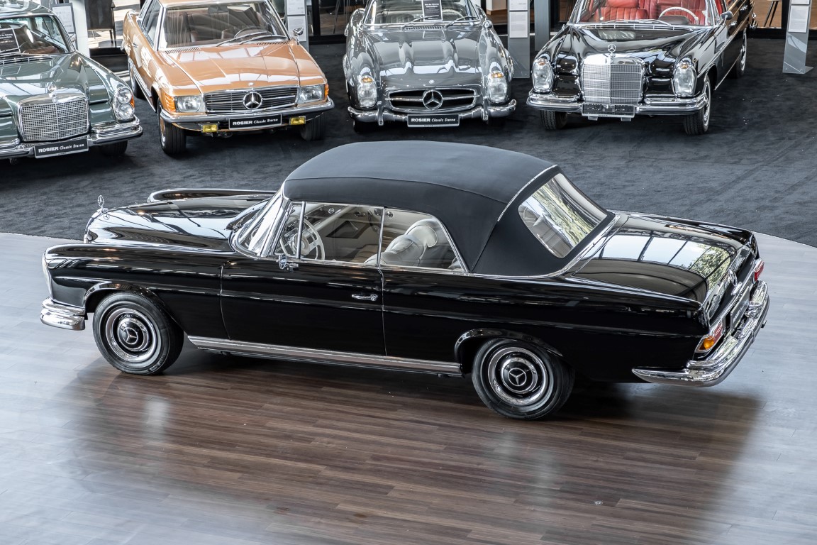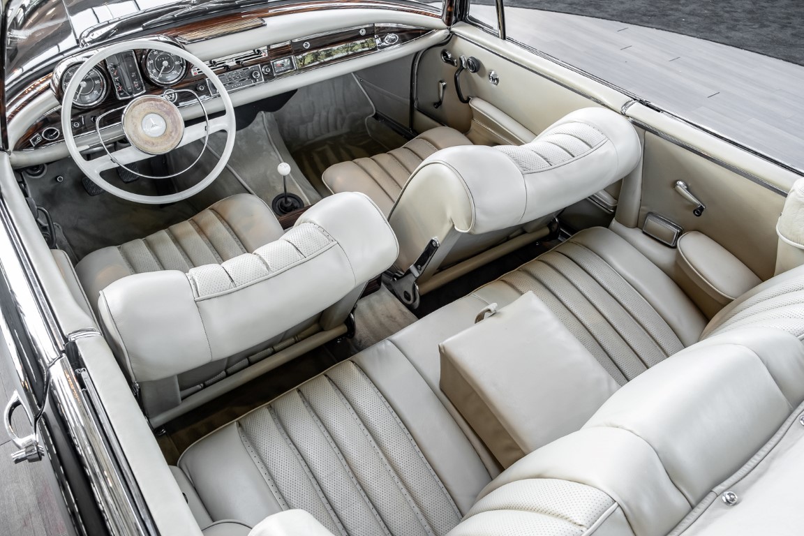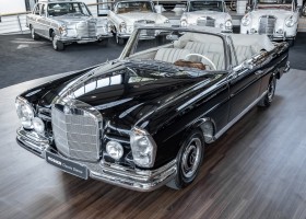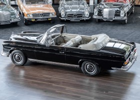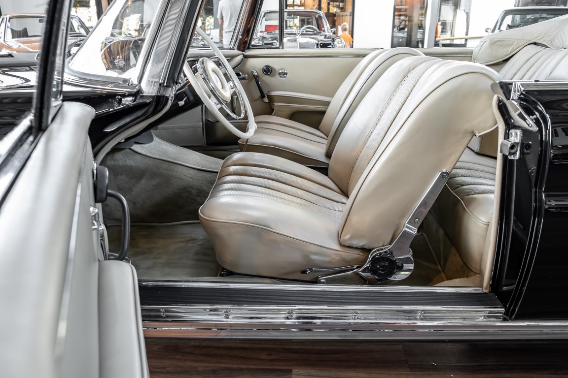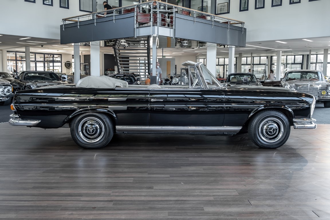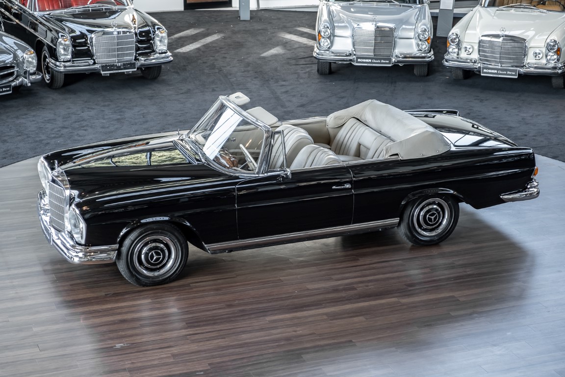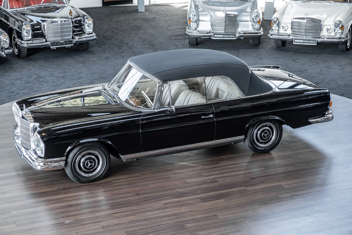 From September 1961 to October 1965, only 2,729 units of the 220 SEb convertible rolled off the assembly line in Sindelfingen. One of the last examples from June 1965 we offer you with this wonderful vehicle on customer order. A flower wholesaler from the Rhine-metropolis Cologne registered the vehicle for the first time on 22.06.1965. The cardboard letter in the original proves it impressively: in the 55 years that the vehicle has been on the road, only 6 previous owners in the open S-Class have slid along.