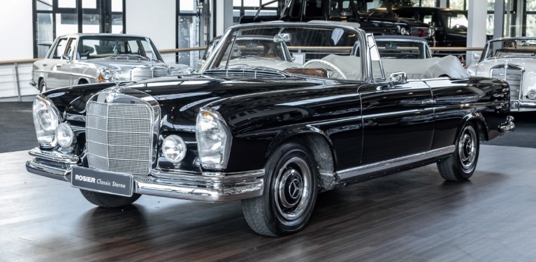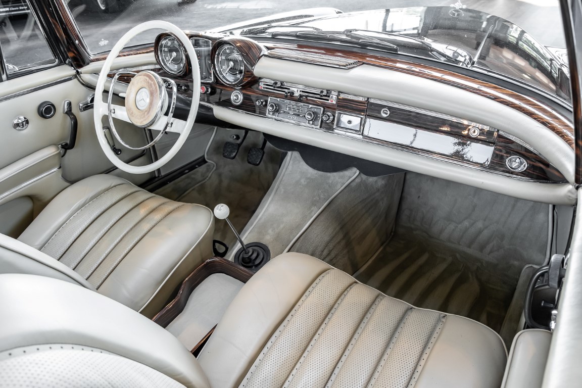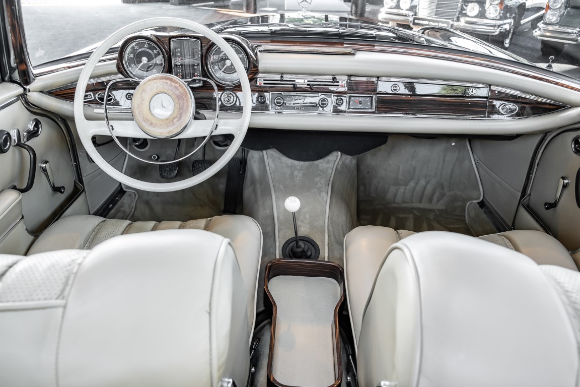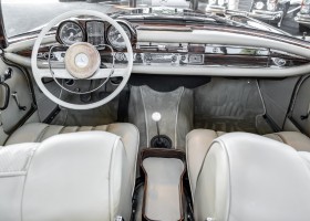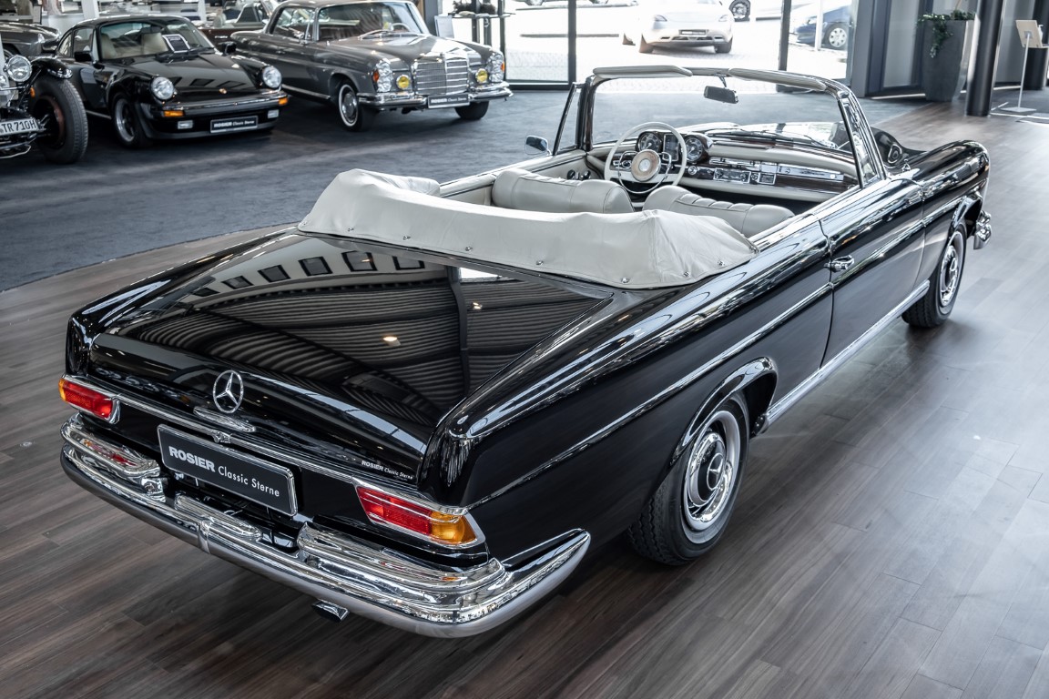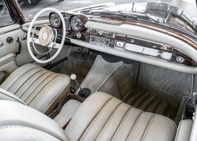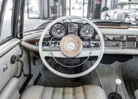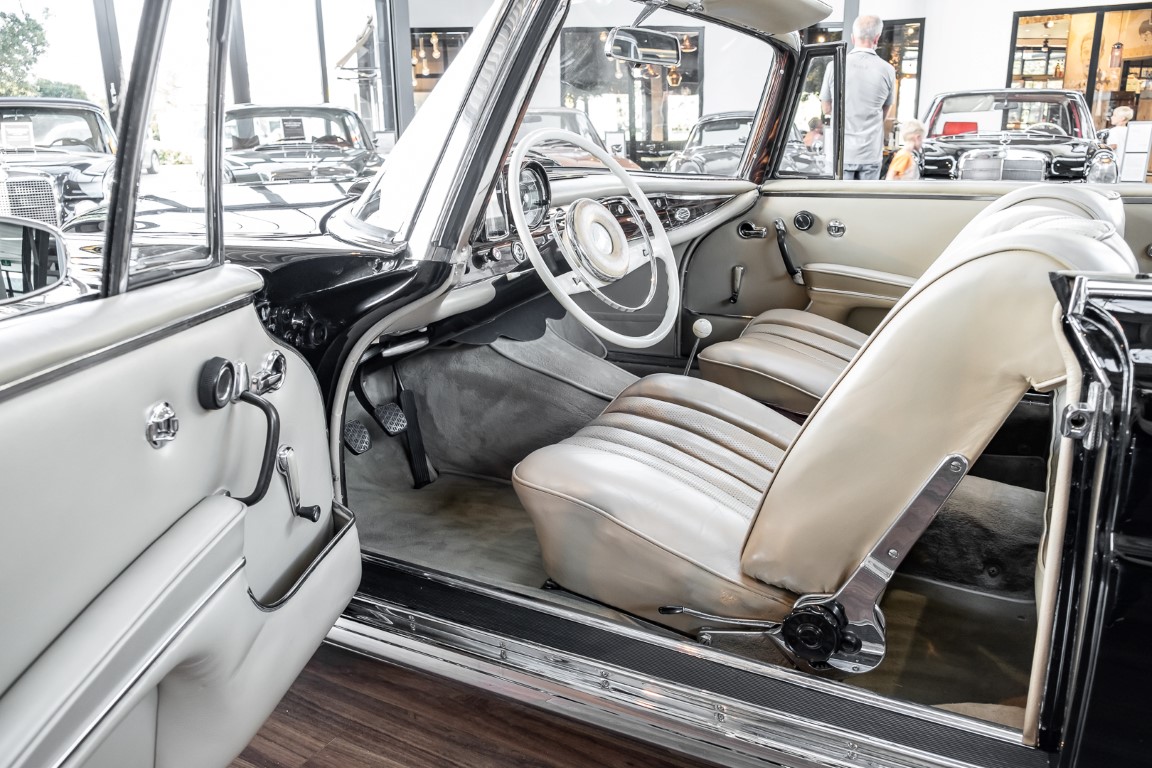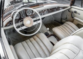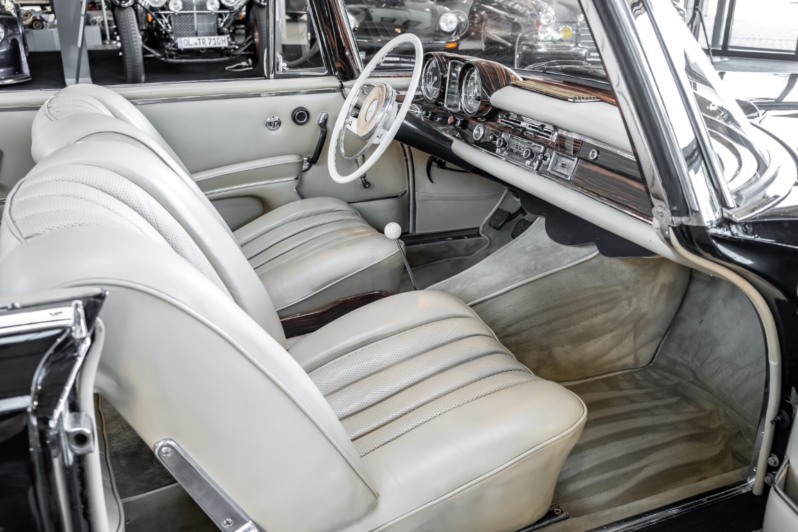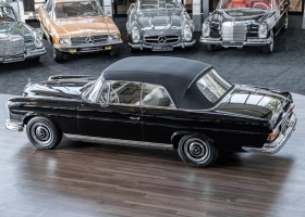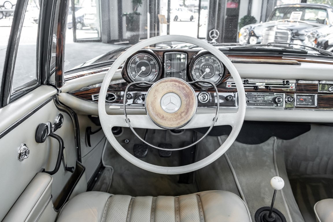 From September 1961 to October 1965, only 2,729 units of the 220 SEb convertible rolled off the assembly line in Sindelfingen. One of the last examples from June 1965 we offer you with this wonderful vehicle on customer order. A flower wholesaler from the Rhine-metropolis Cologne registered the vehicle for the first time on 22.06.1965. The cardboard letter in the original proves it impressively: in the 55 years that the vehicle has been on the road, only 6 previous owners in the open S-Class have slid along.