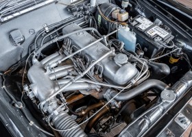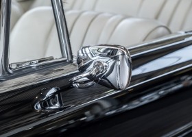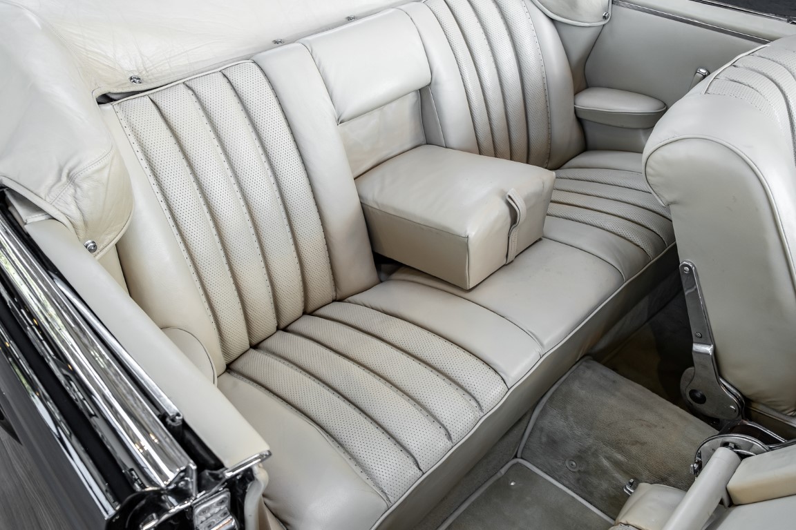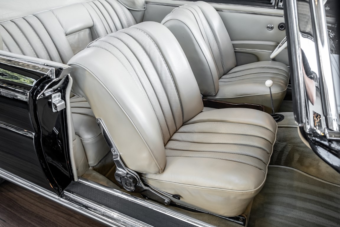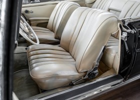 The current owner fell in love with the shiny black lacquer dress of the open five-seater, which apparently the previous owner - a coachbuilder from the Ruhr area - had chosen for the vehicle. According to records, the vehicle was delivered in metallic copper. However, it looks good on him, the black paint with black top and a well-preserved leather interior in parchment. A good decision, we think.