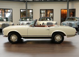 Diese 230 SL Pagode W113 wurde nach dem Grundsatz der Mercedes-Benz Philosophie restauriert: „Das Beste, oder nichts.“ Absolut jede Baugruppe wurde im Detail befundet und im Anschluss in akribischer Genauigkeit wieder zusammengesetzt. Oberste Priorität war es, der Werksauslieferung möglichst nahe zukommen. Für alle nicht mehr lieferbaren originalen Mercedes-Benz Ersatzteile wurden individuelle Lösungen gesucht und gefunden. Teile wurden neuaufgearbeitet bzw. durch hochwertige Teile ersetzt oder nachkonstruiert. Lackierung, Interieur, Verdeck & die Technik wurden nach Herstellervorgaben restauriert. Alle Maßnahmen für eine Europäisierung wurden veranlasst und umgesetzt. Überzeugen Sie sich selbst von der Qualität des Ergebnisses.