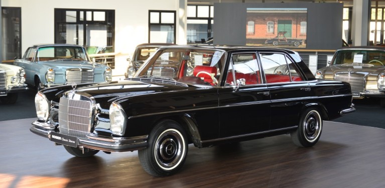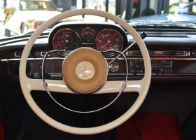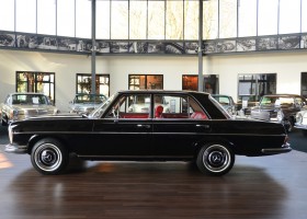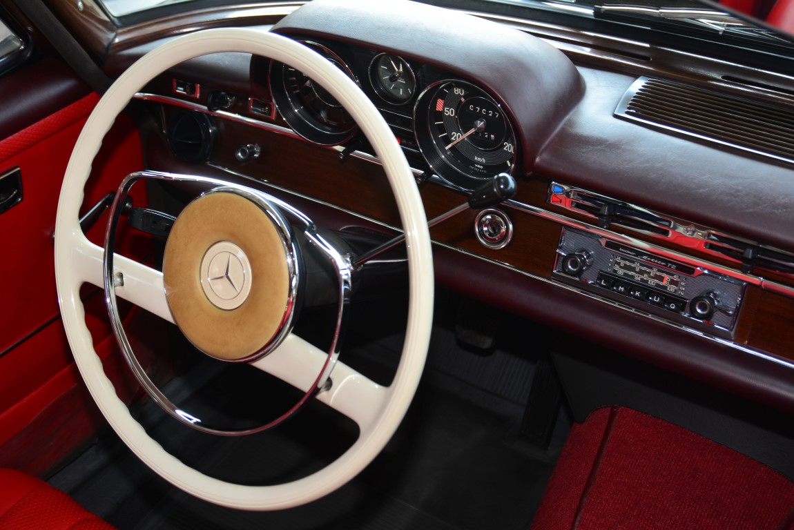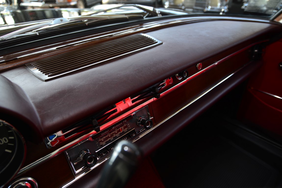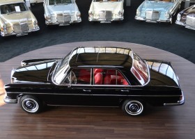 In autumn 1966 Mercedes-Benz in Stuttgart received an order for a 250SE sedan to be delivered to Spanish Sahara, a province of Spain in West Africa. The colour should be black, the interior in light red leather. A headrest as a rest cushion for the passenger, ivory-coloured steering wheel, tropical battery, white wall tyres, better springs and an underride guard. Automatic transmission, power steering and a sunroof completed the wishes. The choice of colours for hot African conditions was extraordinary. Presumably the car was meant for a high government member or a high clergyman dignitary.