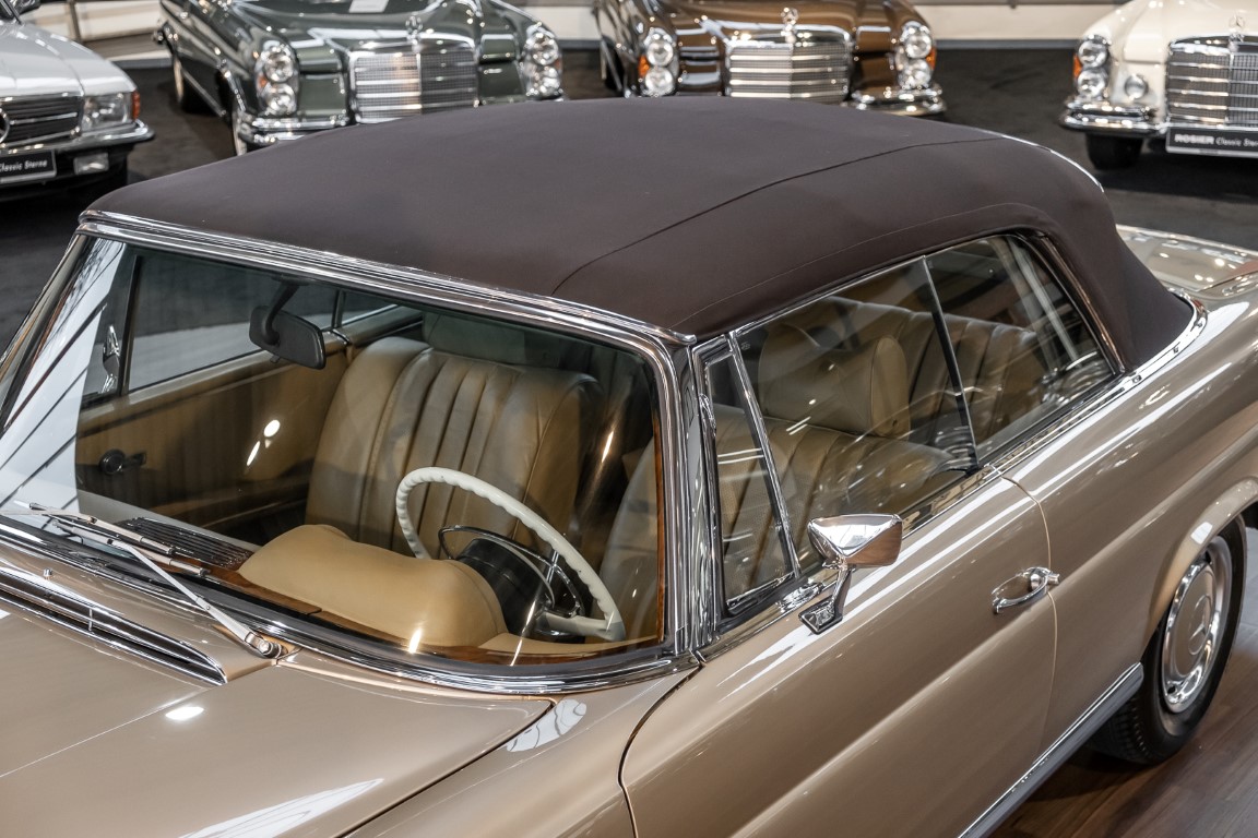 The 280 SE 3.5 Cabriolet offered here in sand beige metallic was delivered on 01.04 1971 to a company based in Munich. The car was regularly serviced at the Mercedes-Benz partner Werlin in Rosenheim, which can be seen impressively in the original customer service checkbook. When the elegant convertible was sold in the 1980s, it found its new home in faraway Japan. It was given a worthy place in a recognized museum in Tokyo/Japan and remained there for over 20 years.