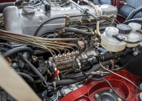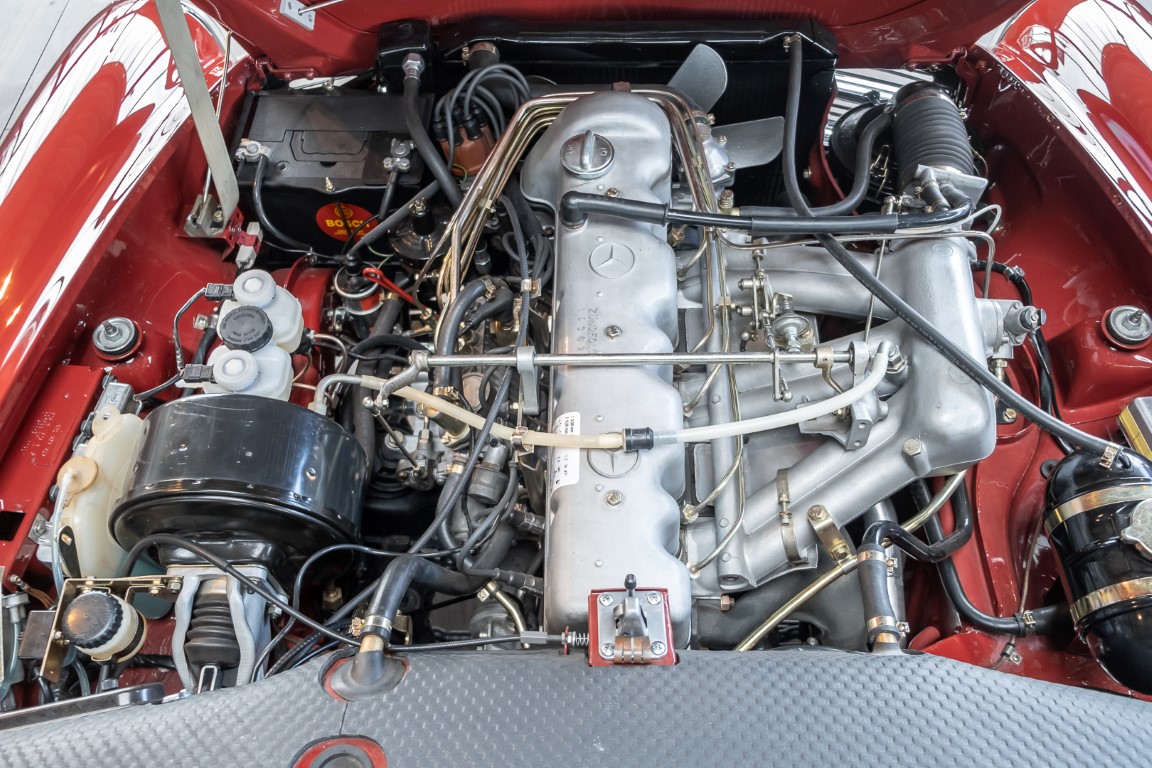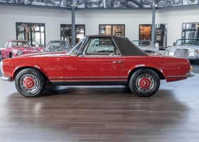This Mercedes Benz 280SL Pagoda delivered in attractive (576G) red was delivered according to our records on August 23, 1968 to its first owner, a member of the US Navy in the USA. The car was equipped with a 4 speed manual transmission, black MB Tex, Becker radio and a hardtop painted in the color of the car. The first owner kept the car until 1972 and the new owner took great pleasure in the sensational roadster and kept the car for a total of 22 years before giving it to his niece in Massachusetts in 1994. She had a teaching job at the university and lived within walking distance. So over the next 17 years, the car was driven just 829 miles. In 2011, the 3rd owner to date sold the car. In 2014, the Pagoda was relinquished again and finally came into our possession in Germany in the spring of 2016.