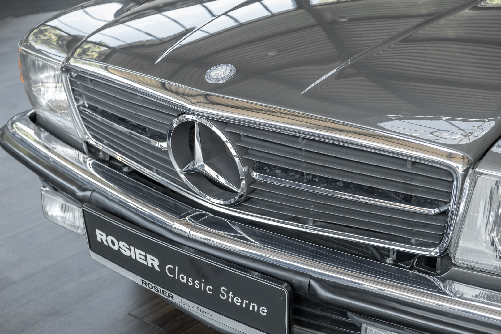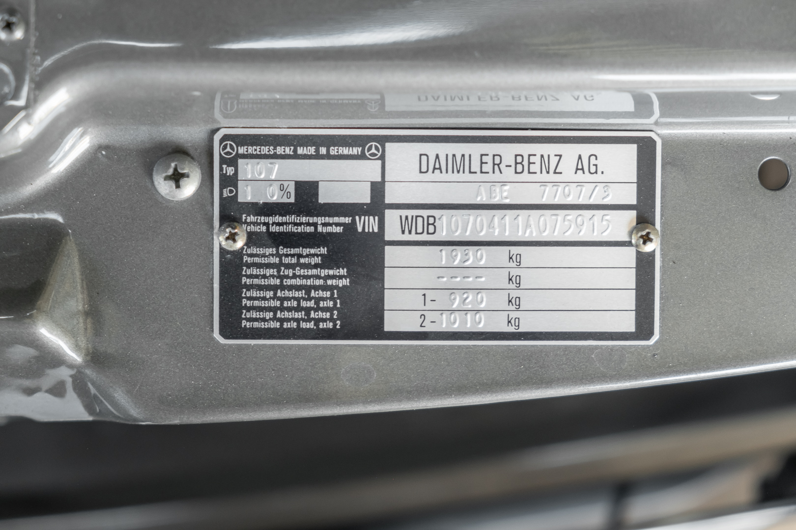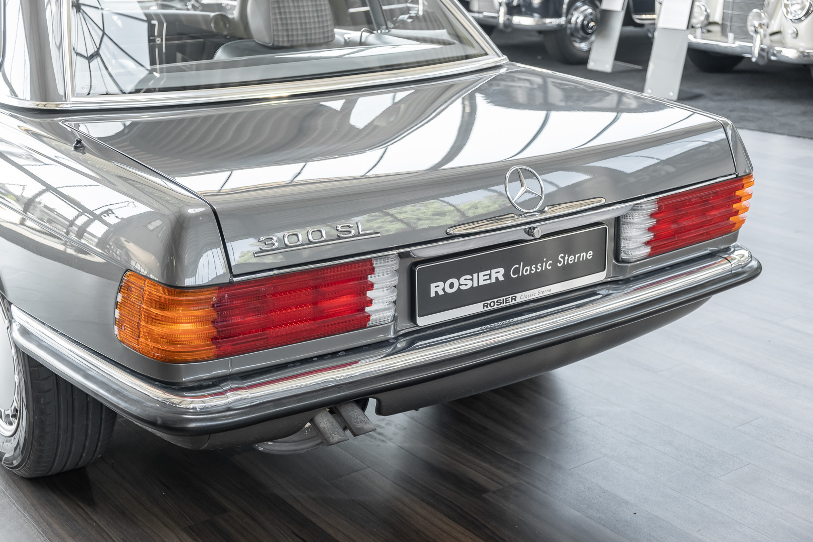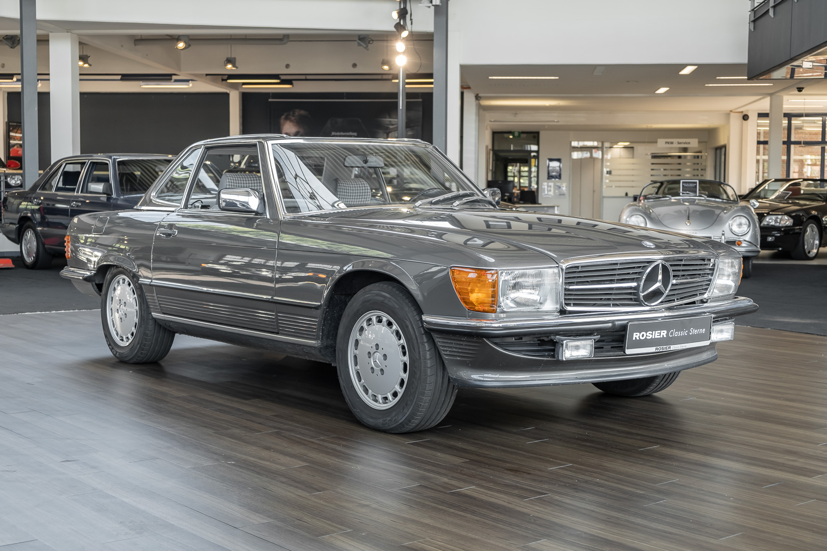 New in the showroom: 300 SL of the 107 model series in anthracite gray metallic in perfect combination with gray check fabric seats. With a mileage of only 41,000 km and a well-maintained Mercedes service booklet this 300 SL presents itself in top condition without exception. The vehicle is currently being reconditioned, further information will follow.