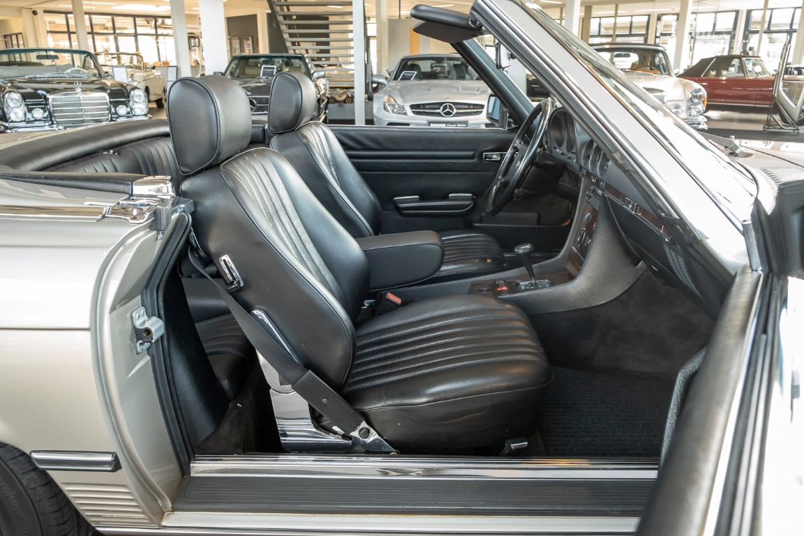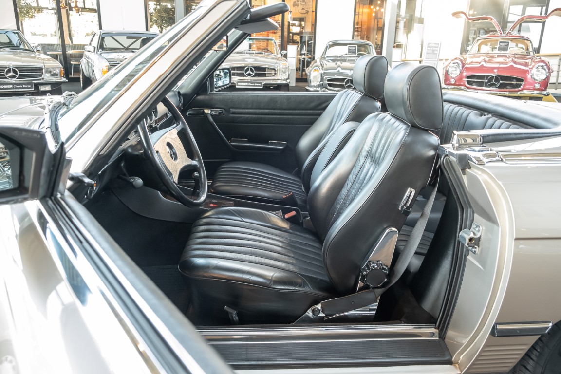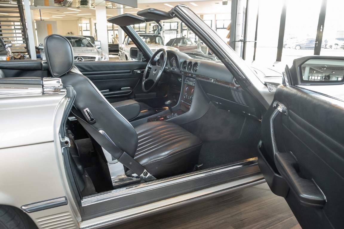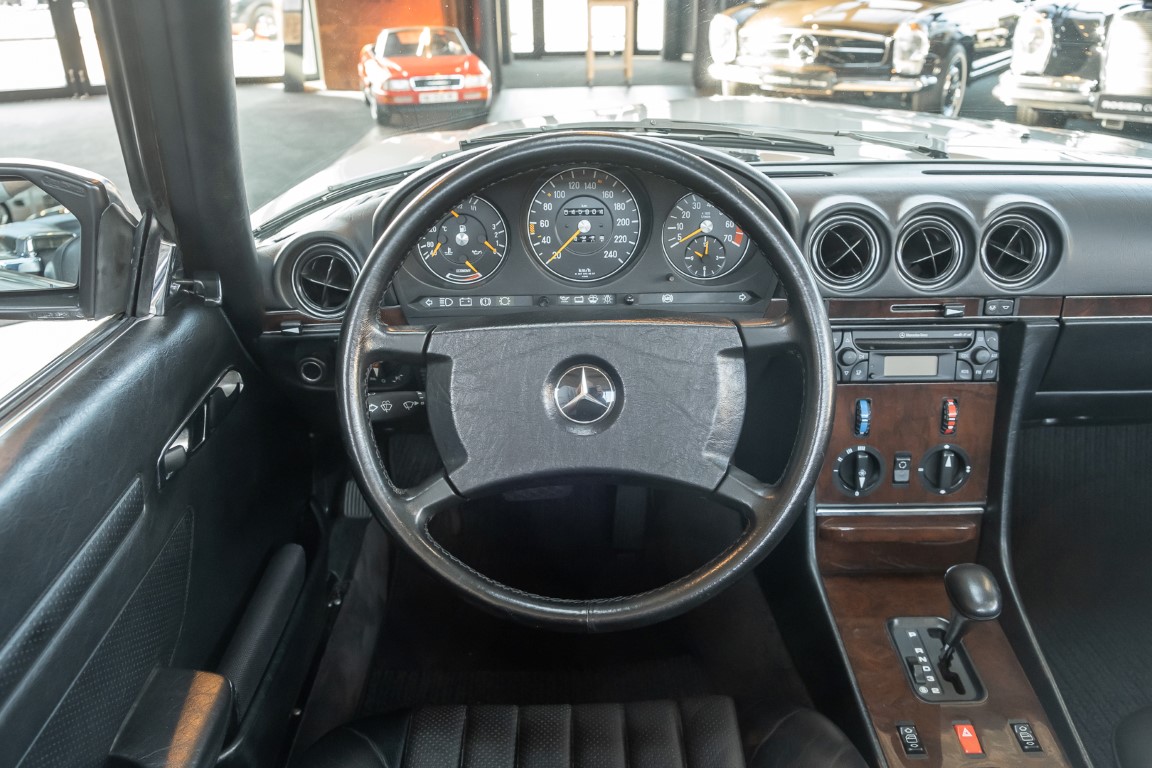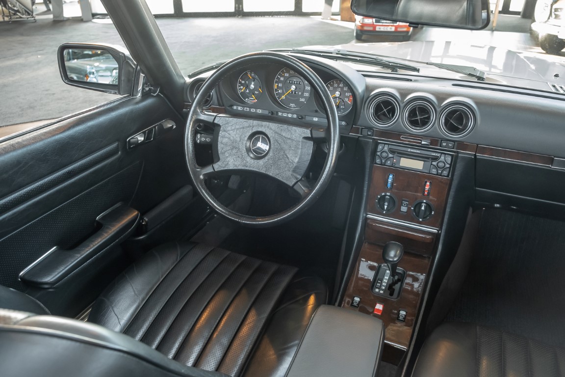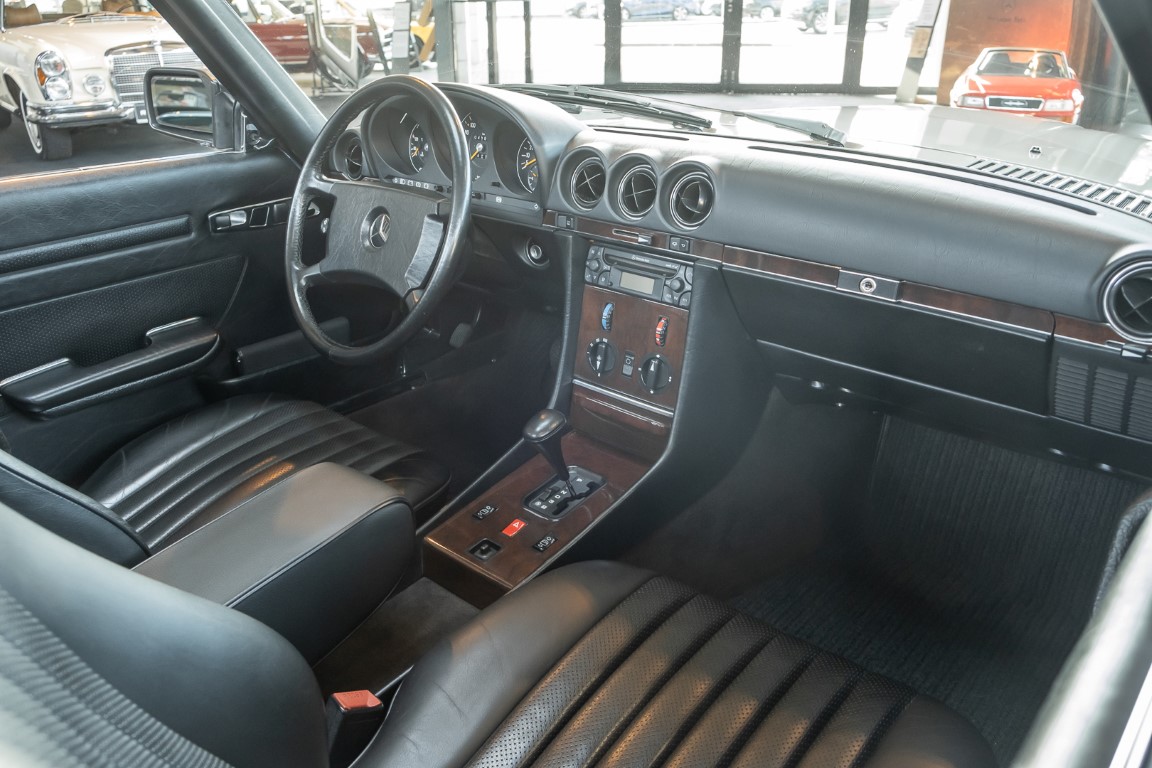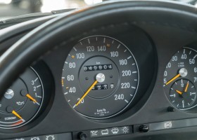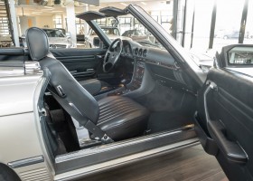 This vehicle captivates in its timeless elegance in smoked silver metallic with black leather especially with the sensational mileage of less than 50,000 km and a great original condition. In the 32 years the vehicle was always well maintained and probably only moved on sunny days. This is the only way to explain the great condition. Technically and visually a great 107, which should not be found in this condition very often. An all-round great and reliable companion that will give you much pleasure.