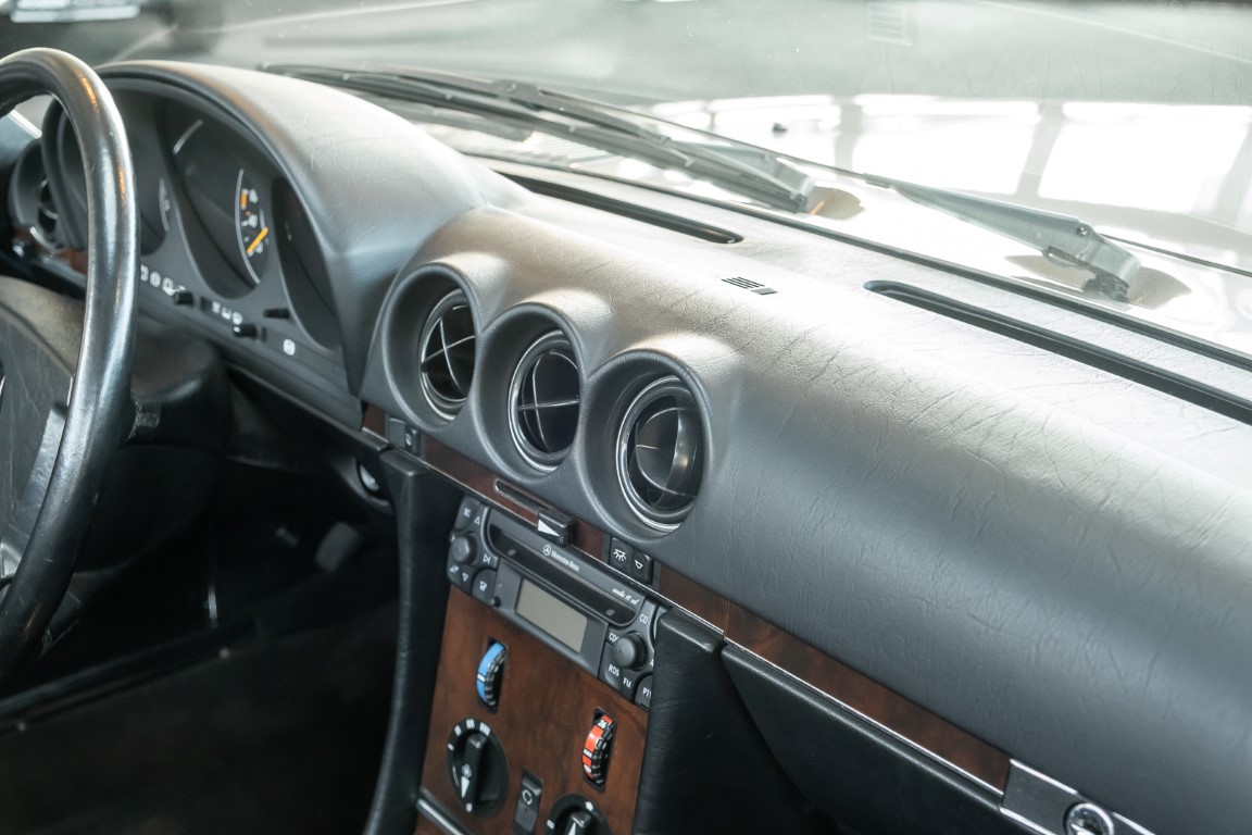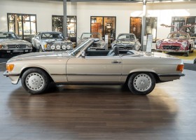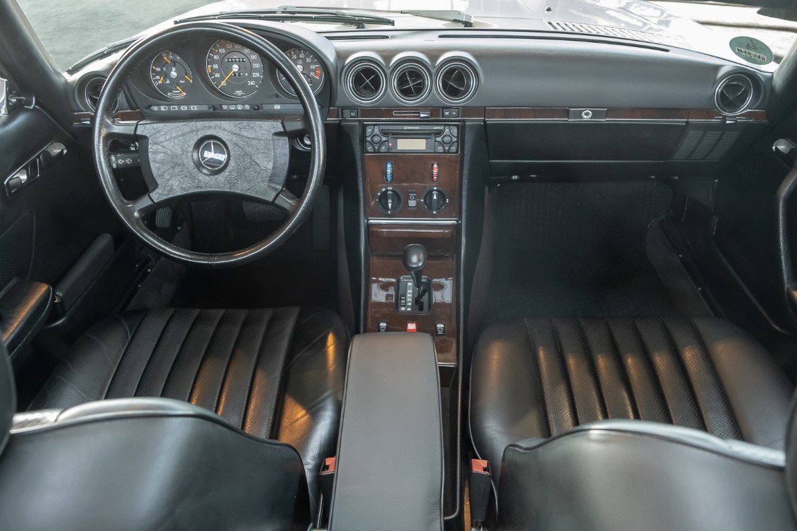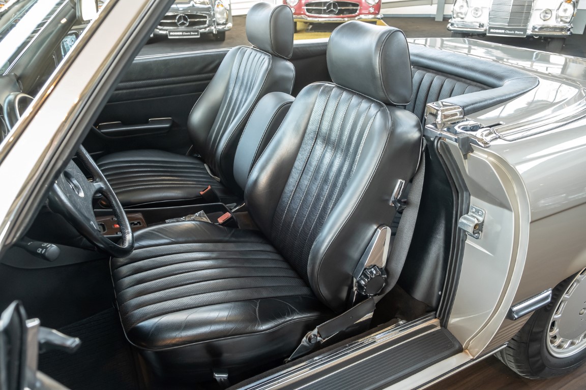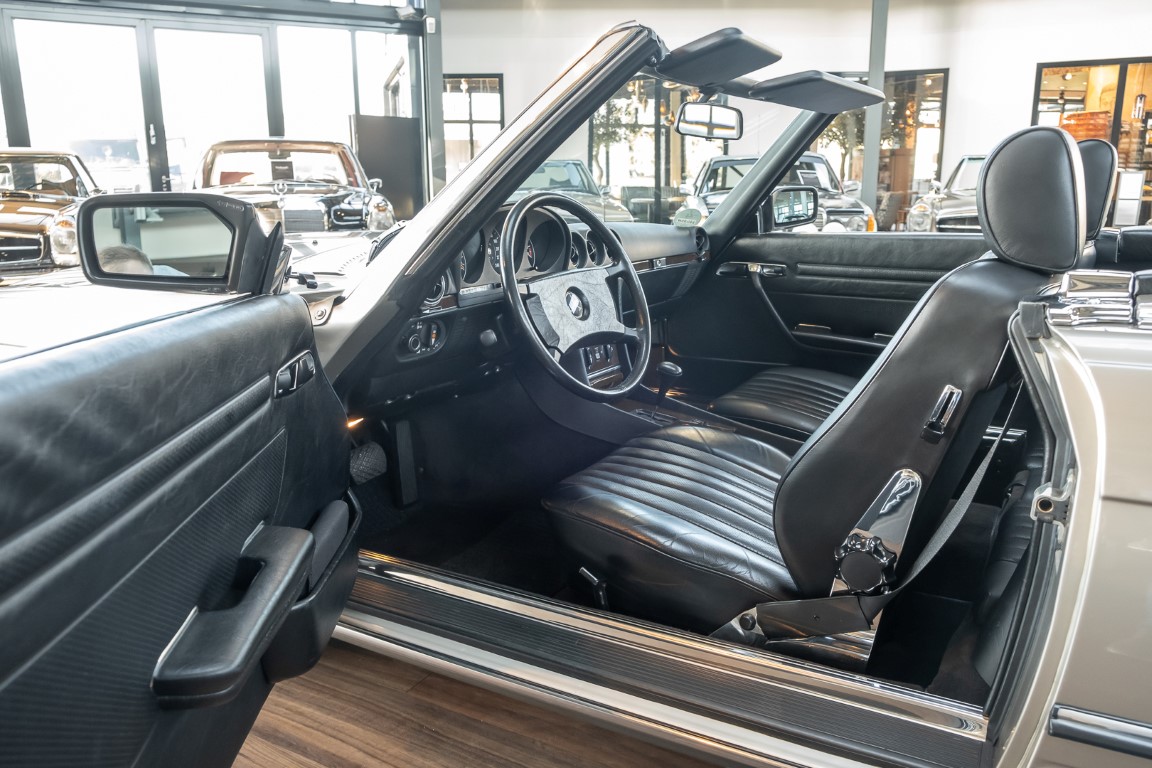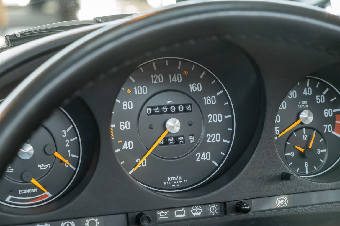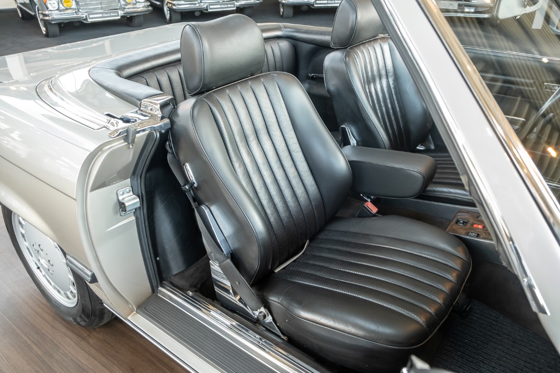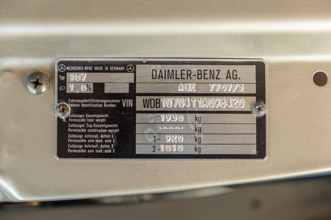 This vehicle captivates in its timeless elegance in smoked silver metallic with black leather especially with the sensational mileage of less than 50,000 km and a great original condition. In the 32 years the vehicle was always well maintained and probably only moved on sunny days. This is the only way to explain the great condition. Technically and visually a great 107, which should not be found in this condition very often. An all-round great and reliable companion that will give you much pleasure.
