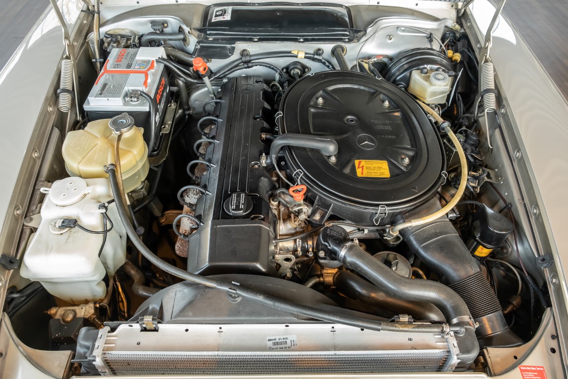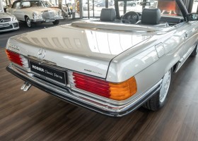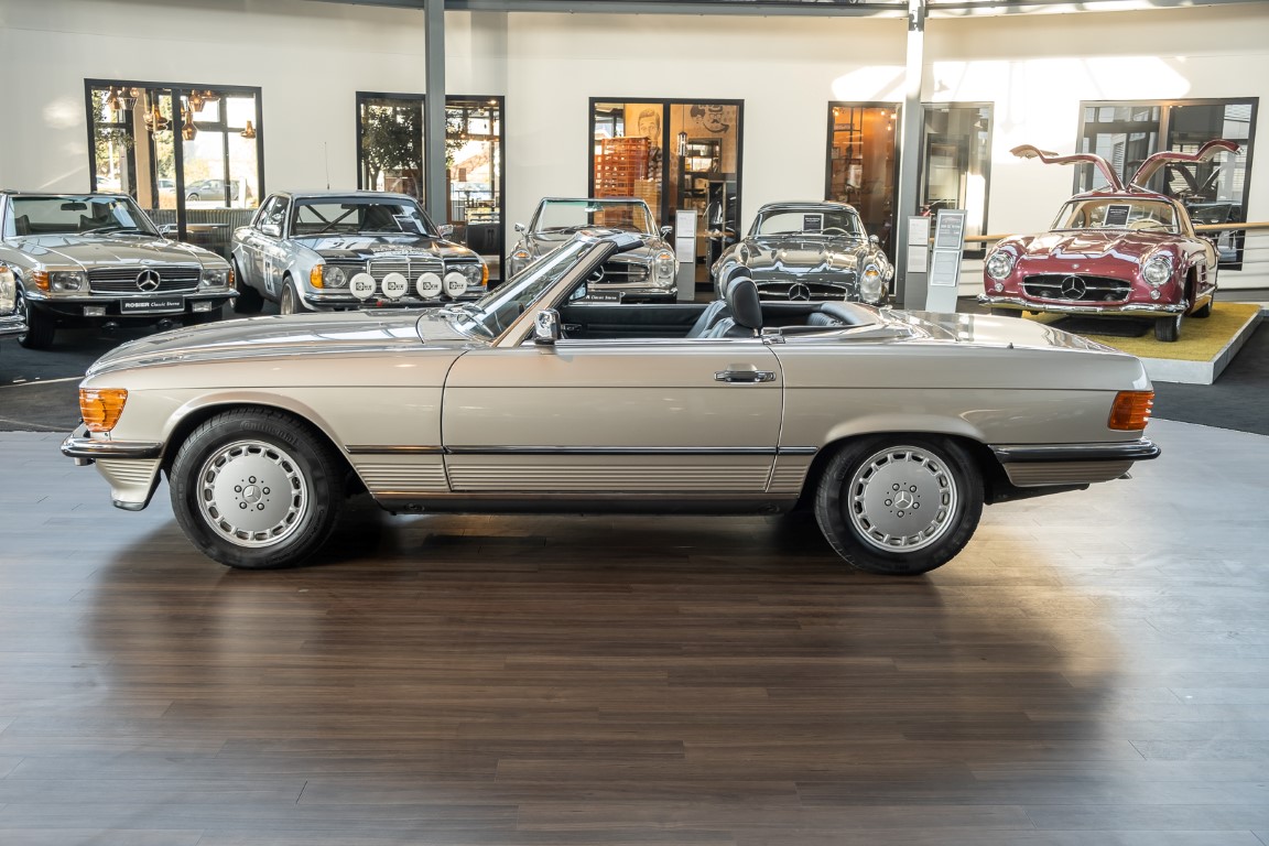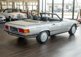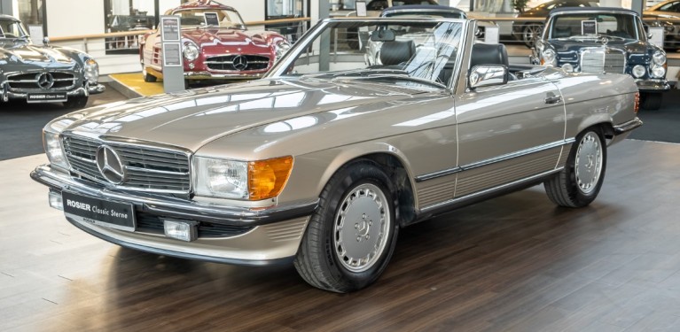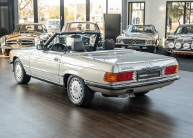 In September 1985, at the IAA in Frankfurt, the completely revised SL model range of the 107 series was presented. In addition to a discreet facelift, which primarily affected the front spoiler and wheels, and improved front suspension, the main focus was on restructuring the engine range. A newly designed 3.0-liter six-cylinder engine, which had made its debut in the W 124 midsize series nine months earlier, replaced the tried-and-true 2.8-liter dohc engine, as it had in the S-Class sedan. Thus, after an interruption of 22 years, there was once again a sports car with the magical type designation 300 SL.
