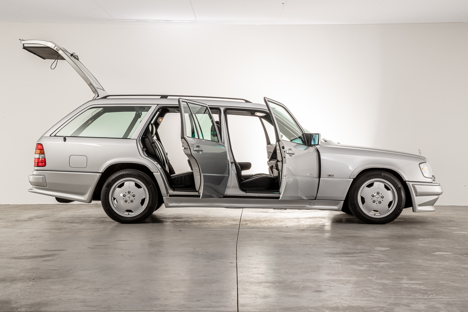 We are delighted to be able to offer you this very special 124 series Estate. Ordered in 1991, the vehicle left the factory in Bremen as a 300 TE with the popular M 103 in-line six-cylinder engine. Its destination was faraway Japan, where the customer put together a very special vehicle. The brilliant silver estate left the factory with a more than extensive range of equipment and was shipped to Japan, where the Japanese AMG branch lent a hand. AMG offered an optimization stage to all those for whom the standard output of the most powerful engine in the model range at the time was not sufficient: the engine based on the M 103 E 30 was given a torque boost by an optimized crankshaft with an extended stroke, and the cylinders were also enlarged. The revised cylinder head with enlarged, polished ports, new valves, harder valve springs and a sharper camshaft helped the engine to produce 234 hp at 5,750 rpm and 317 Nm of torque at 4,500 rpm. An additional intake pipe on the air filter housing covers the increased fresh air requirement. A twin-flow exhaust system with a larger diameter and twin-pipe rear silencer optimize the exhaust gas routing. An optimization that AMG actually only intended for coupé and saloon customers. It is extremely rare to find T-models in the 3.2 AMG version. An absolutely rare opportunity.
