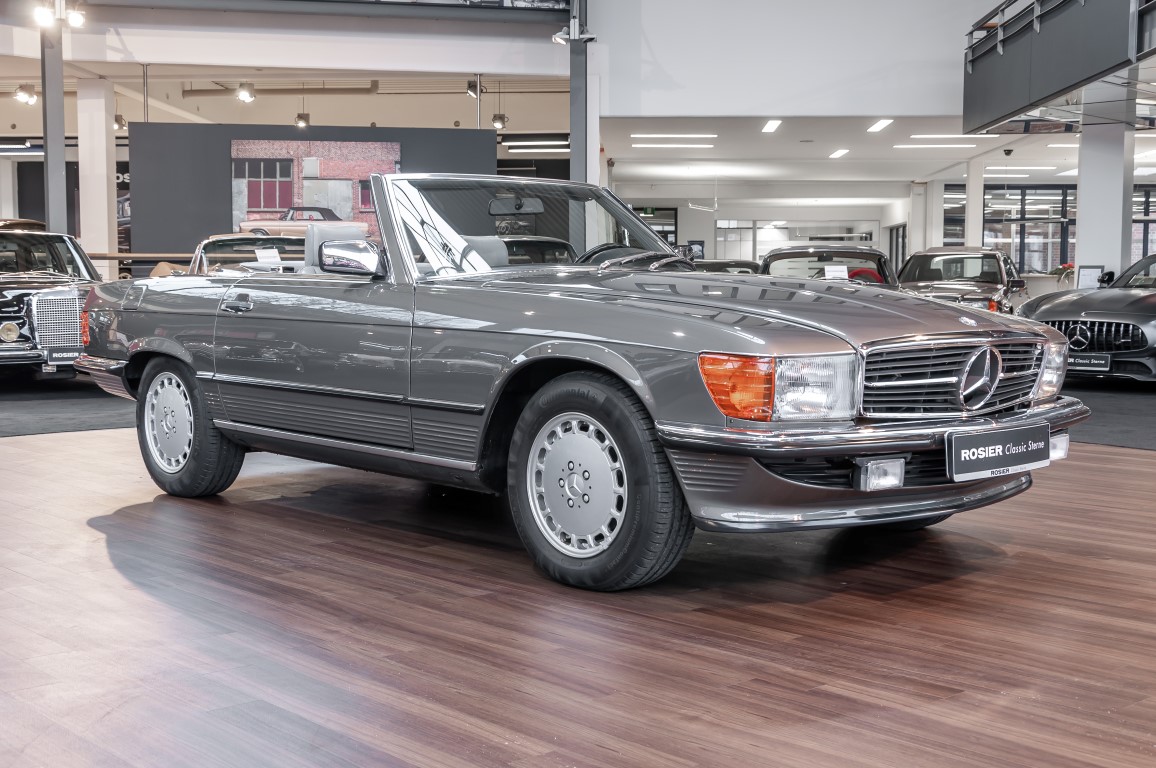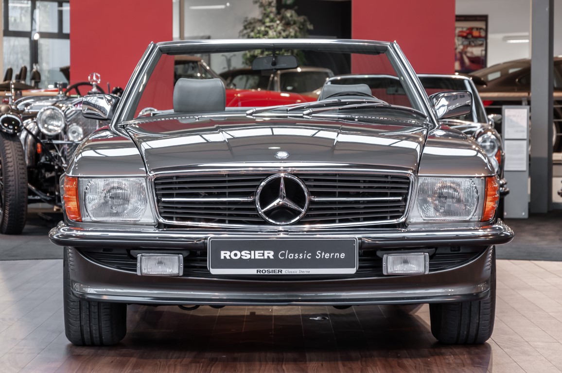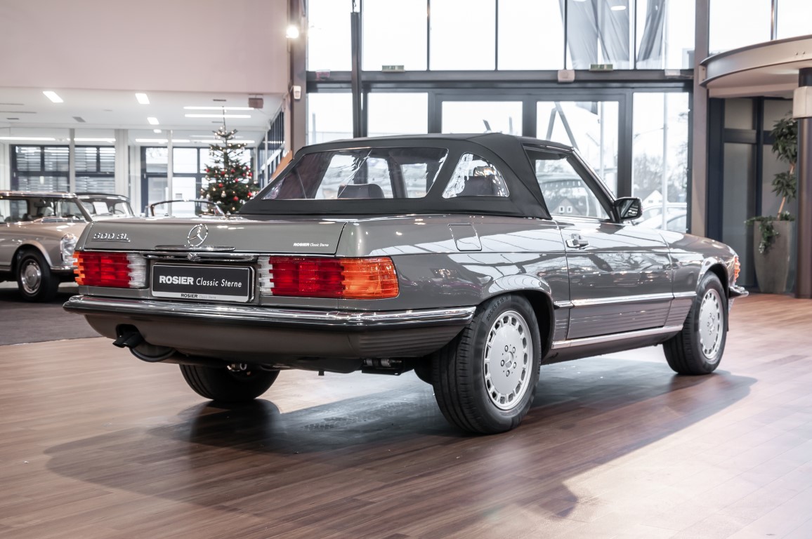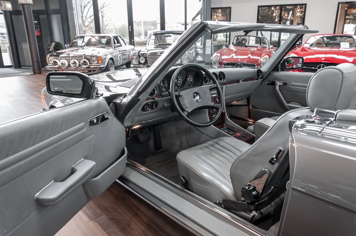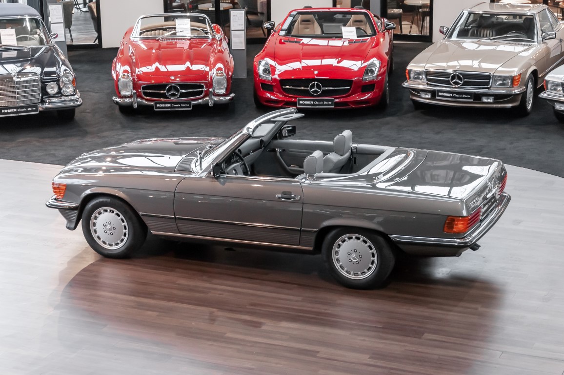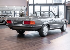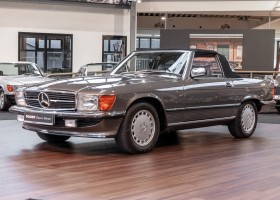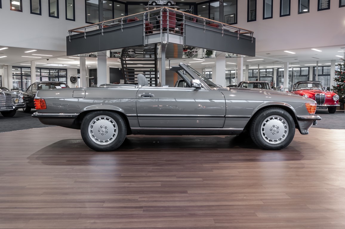 A real rarity: a 500 SL with original 14,500 kilometres. In 1987 this vehicle in noble anthracite grey metallic was delivered to the Munich branch, so it was built in German specification and was originally intended for the German market.