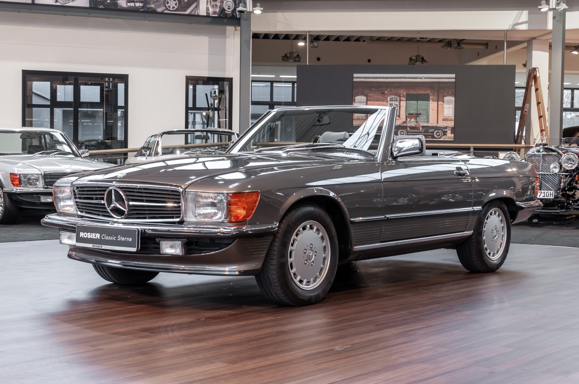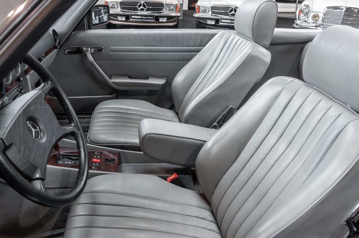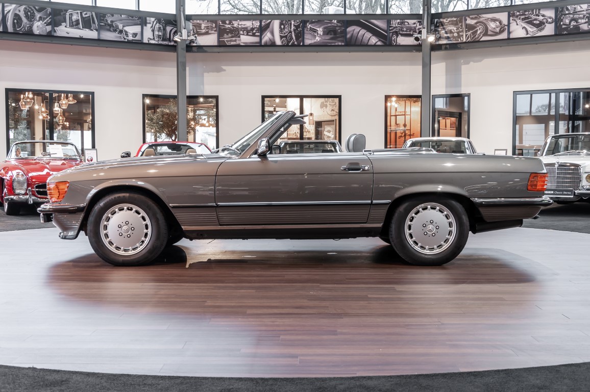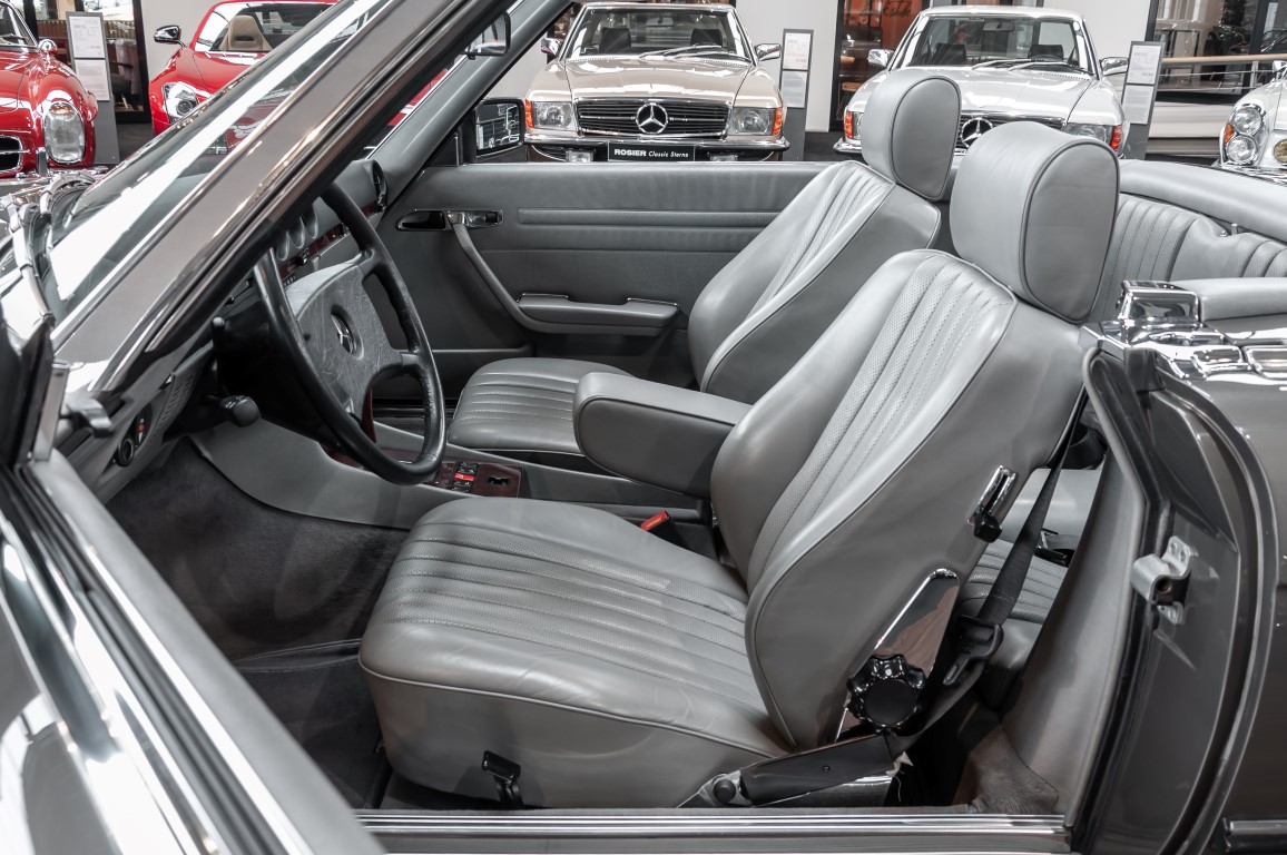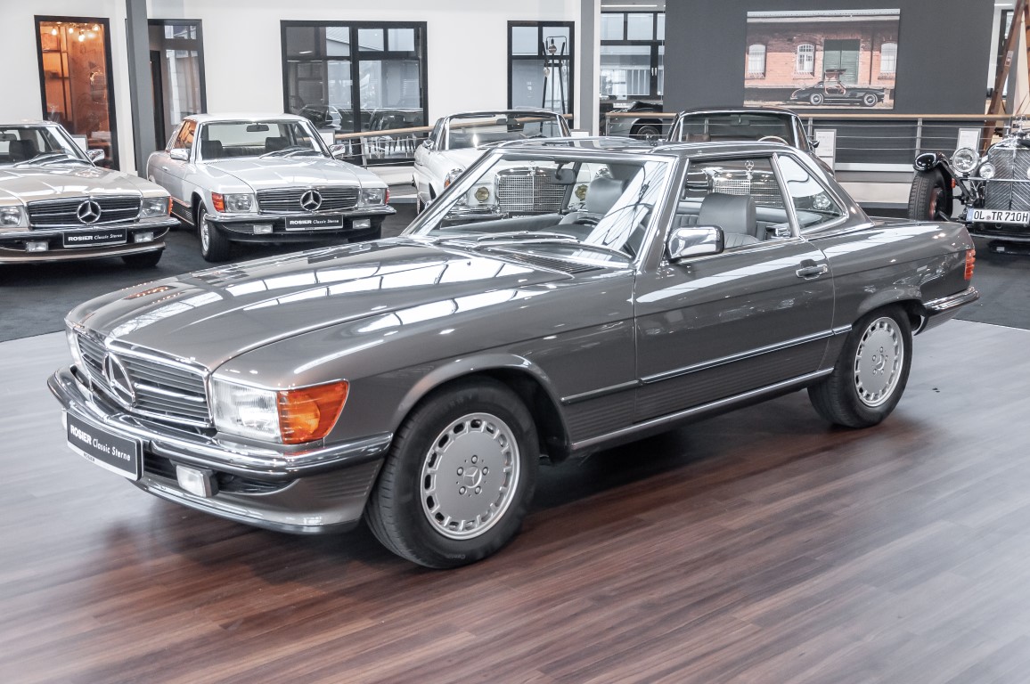 A real rarity: a 500 SL with original 14,500 kilometres. In 1987 this vehicle in noble anthracite grey metallic was delivered to the Munich branch, so it was built in German specification and was originally intended for the German market.