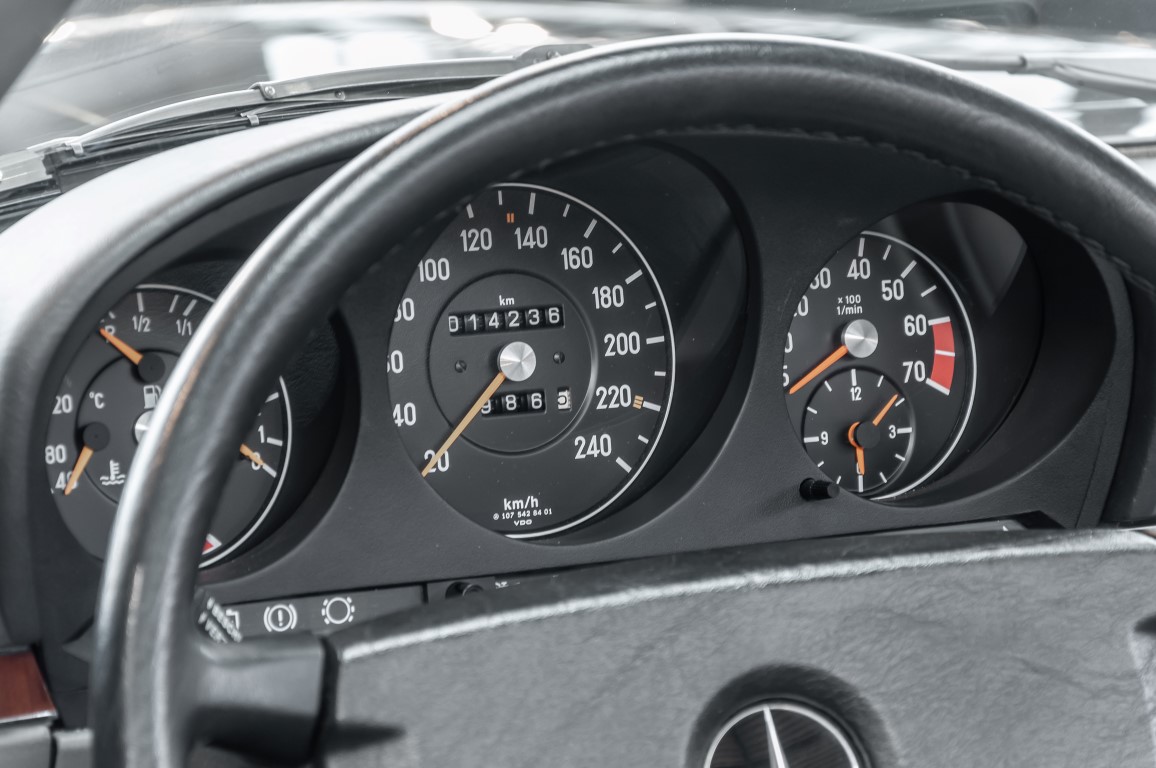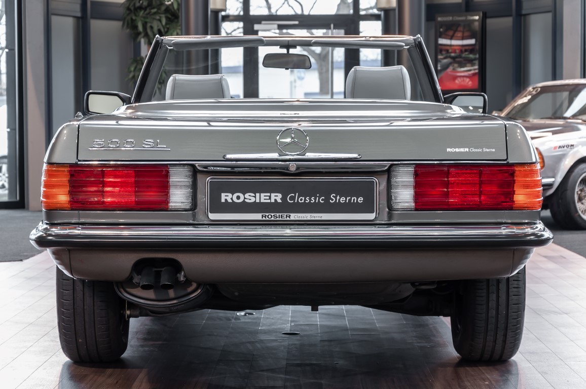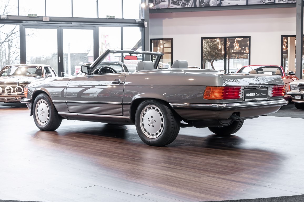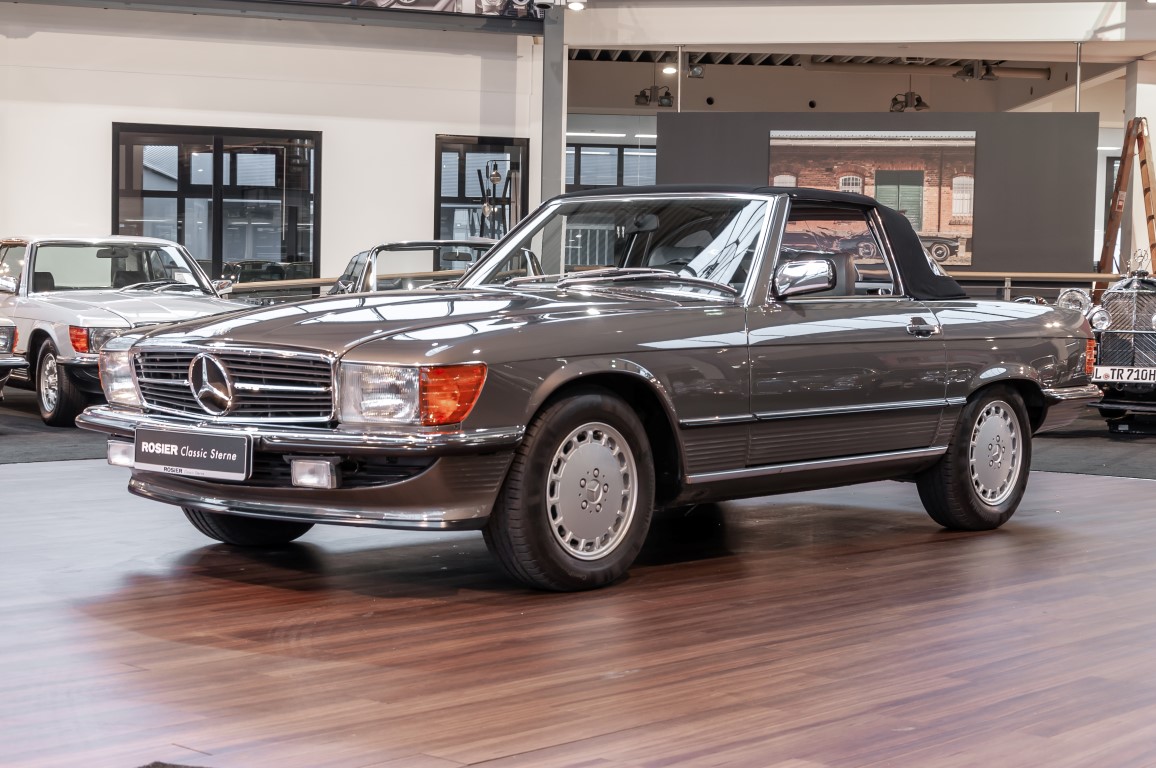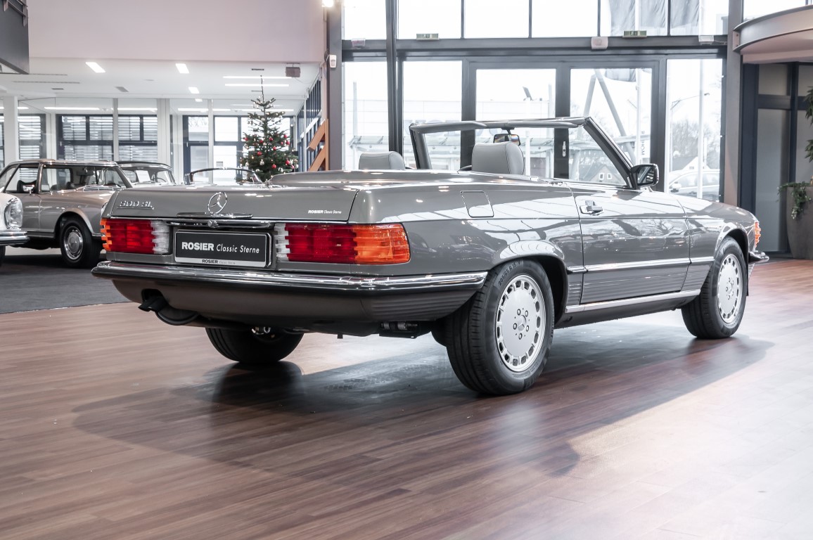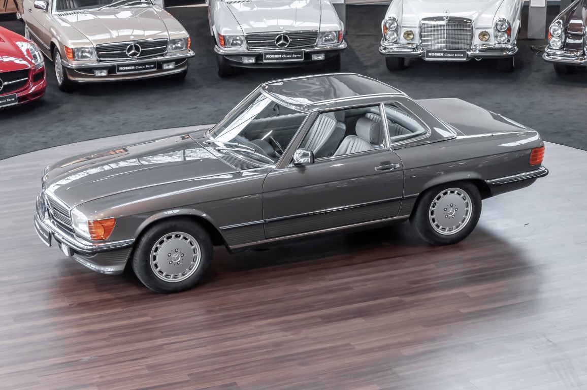 A real rarity: a 500 SL with original 14,500 kilometres. In 1987 this vehicle in noble anthracite grey metallic was delivered to the Munich branch, so it was built in German specification and was originally intended for the German market.