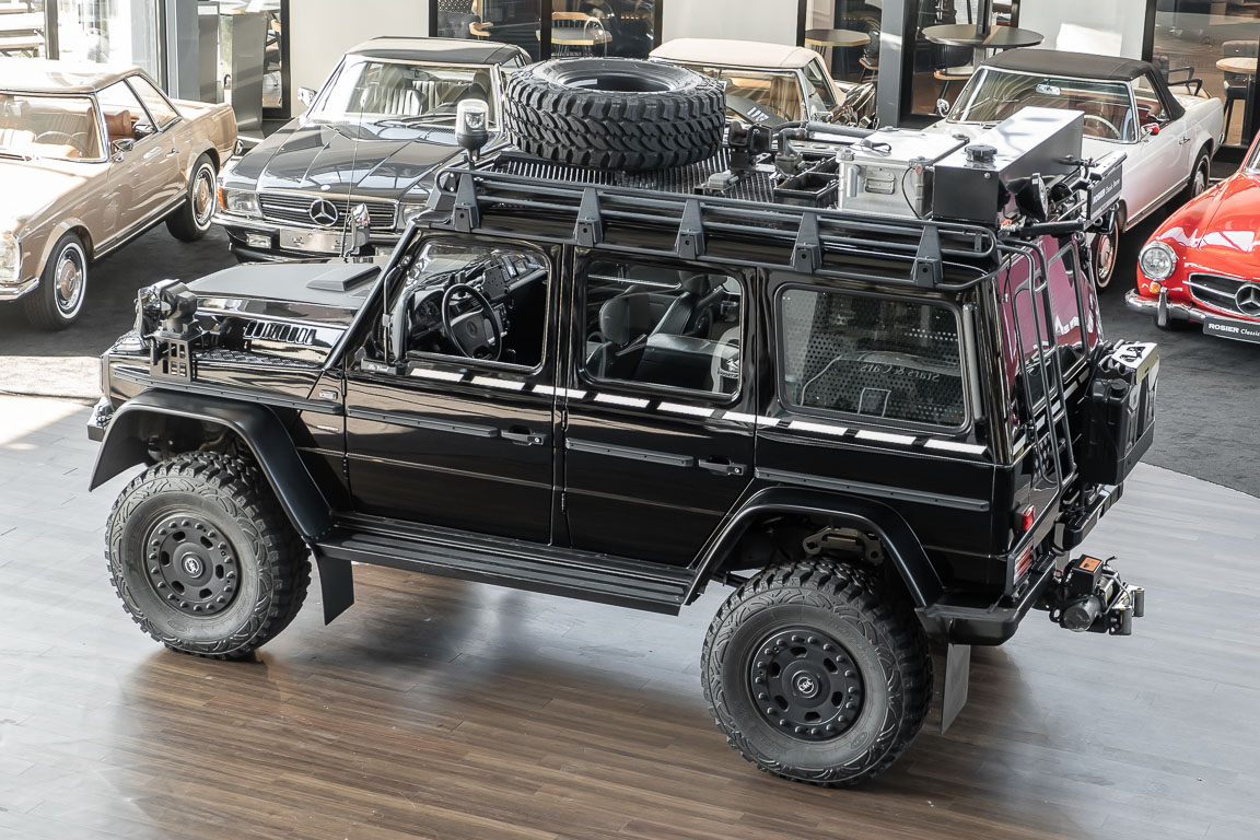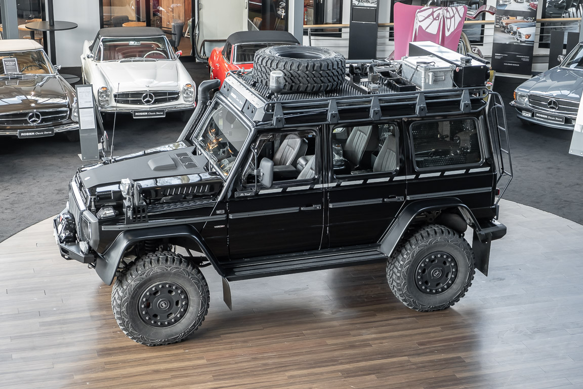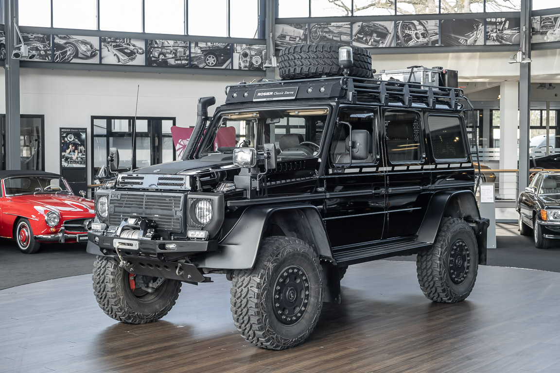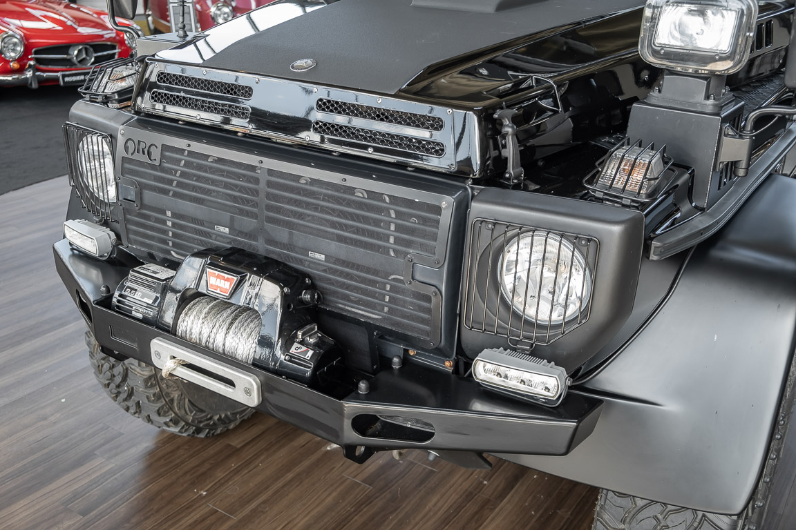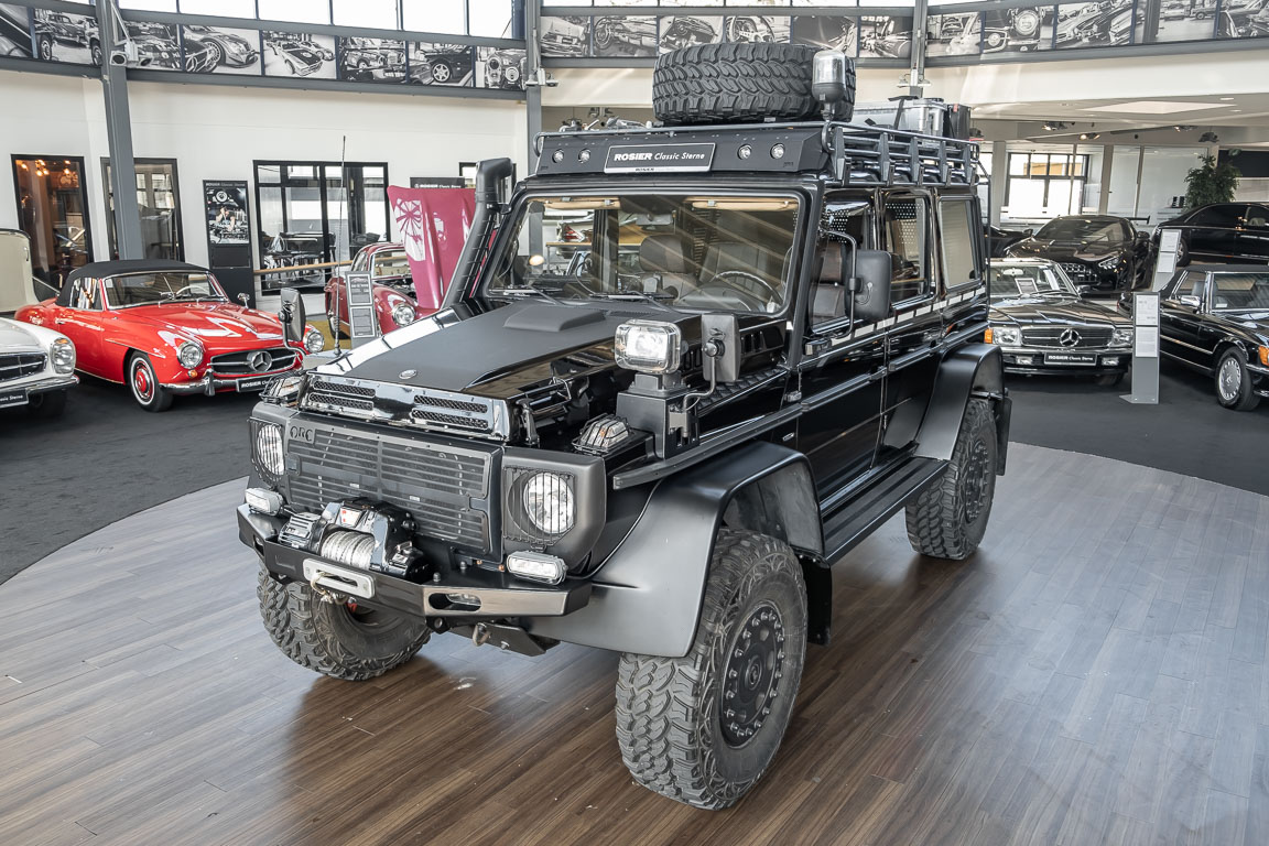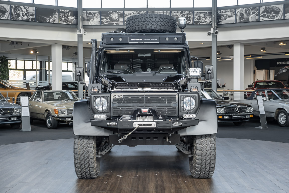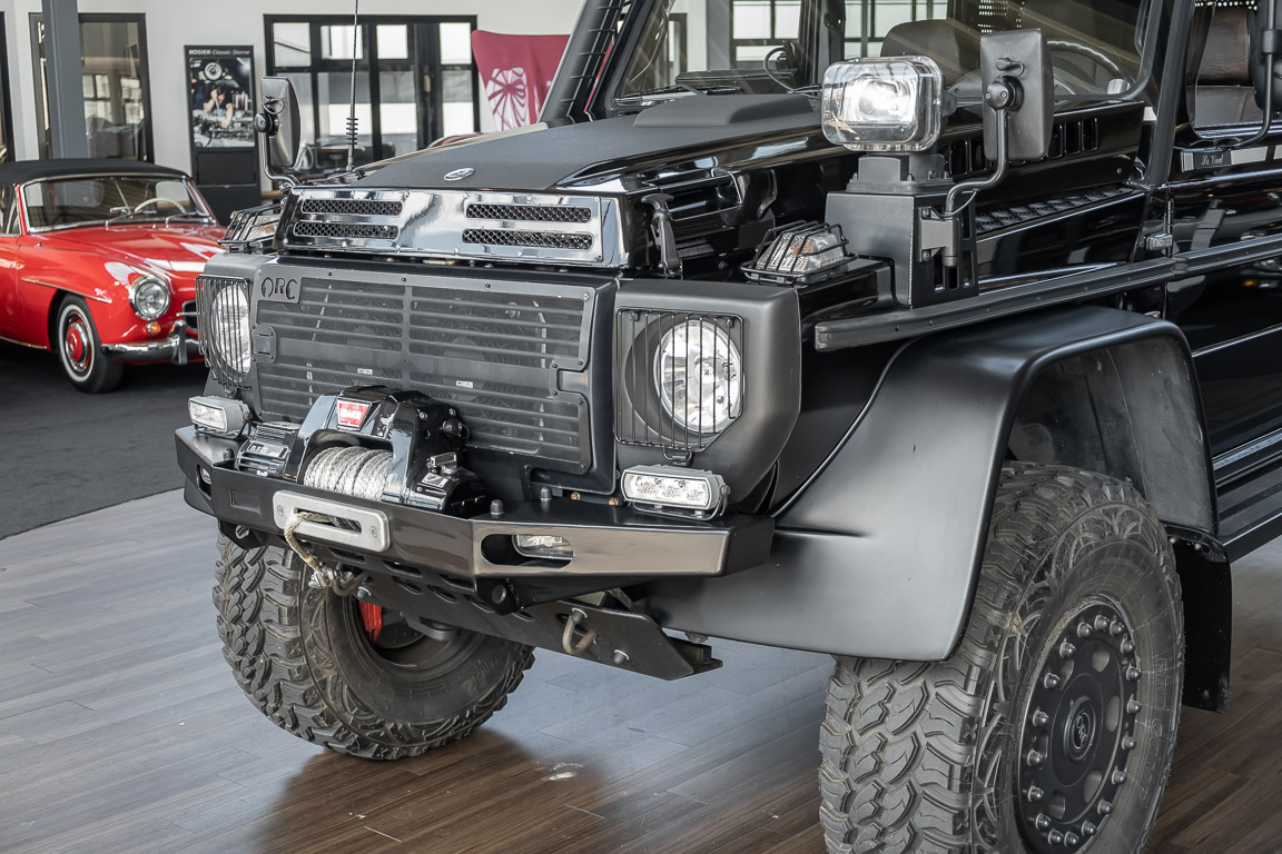 We are pleased to offer you this very special G model. To mark the 30th birthday of the Mercedes-Benz G, the special edition "G Edition Pur" was released in 2009. The reflection back to the roots was well received. Enthusiasts, collectors and G fans alike were enthusiastic about this workhorse. An entrepreneur, car enthusiast and avid hunter from Oldenburg's Ammerland region had the vehicle rebuilt by off-road specialist ORC after it was purchased. Portal axles from the G 63 AMG 6x6 as well as the tire pressure control system and Hutchingson beadlock rims are just the highlights of a conversion in which over €100,000 was invested. An integrated gun cabinet, winches at the front and rear of the vehicle and a satellite phone make the vehicle the ideal companion for all projects - whether onroad, offload, in the forest or in the desert! A unique piece that rightly deserves the title "off-road legend". Welcome to ROSIER Classic Stars.