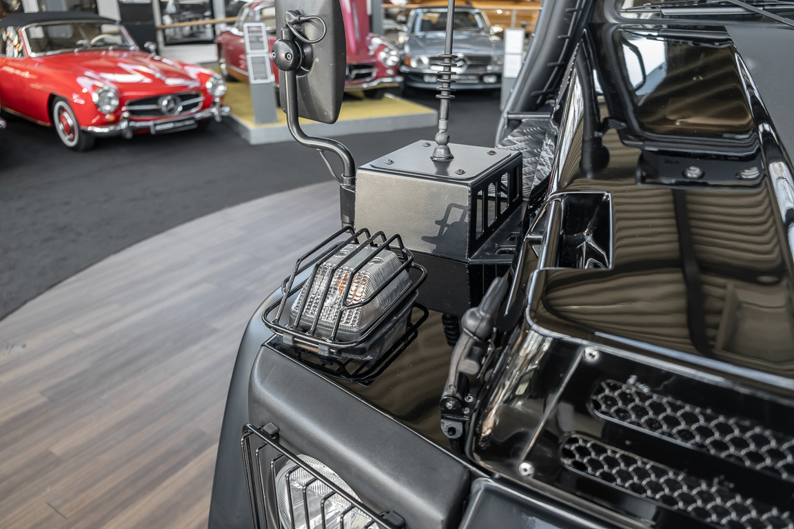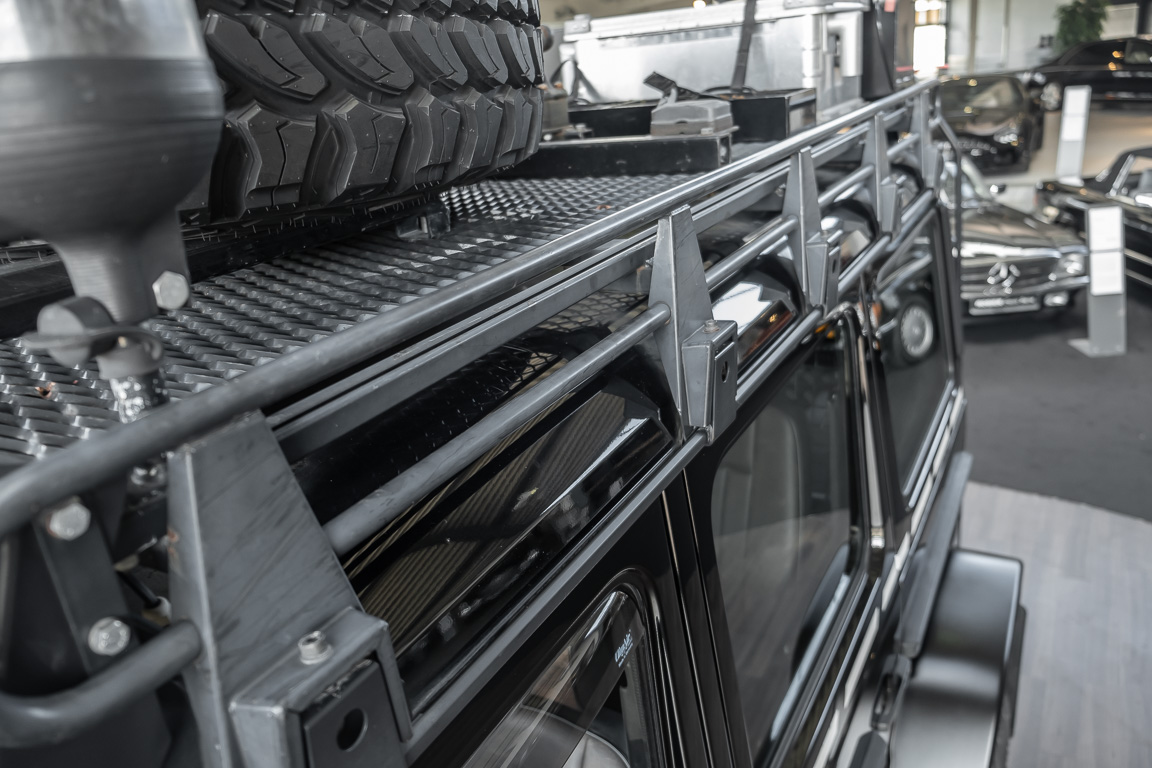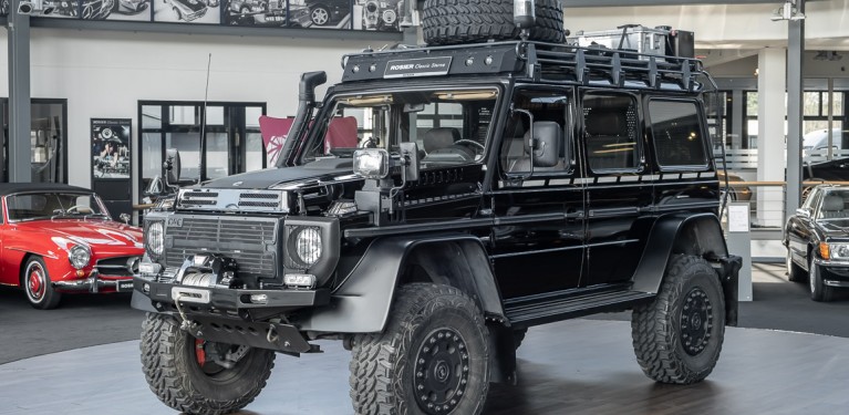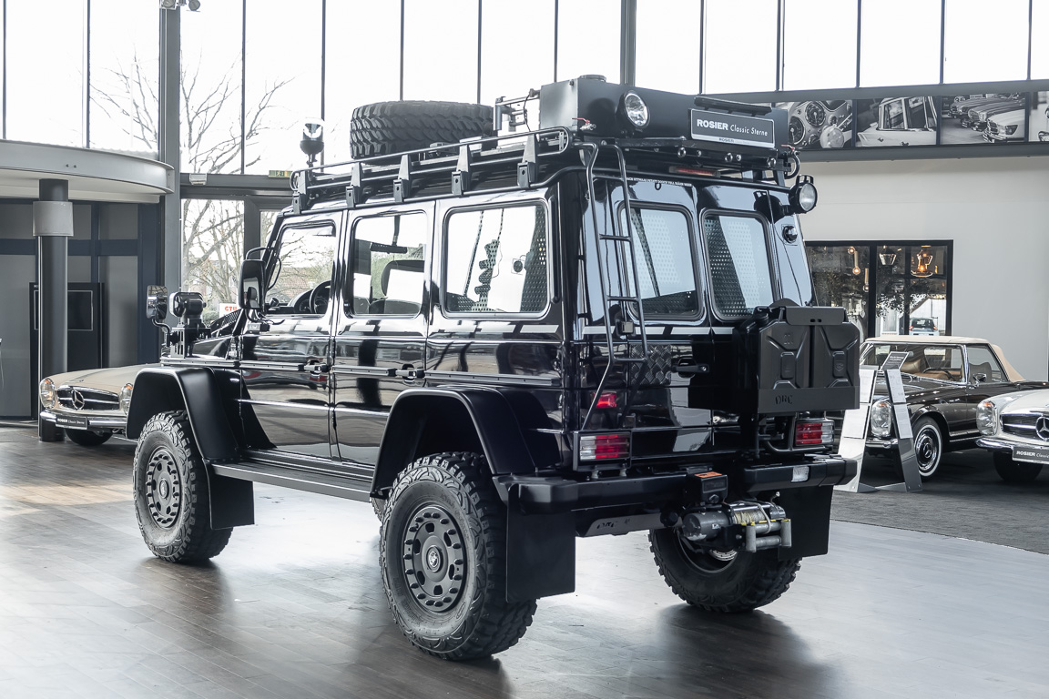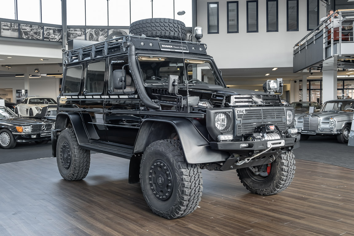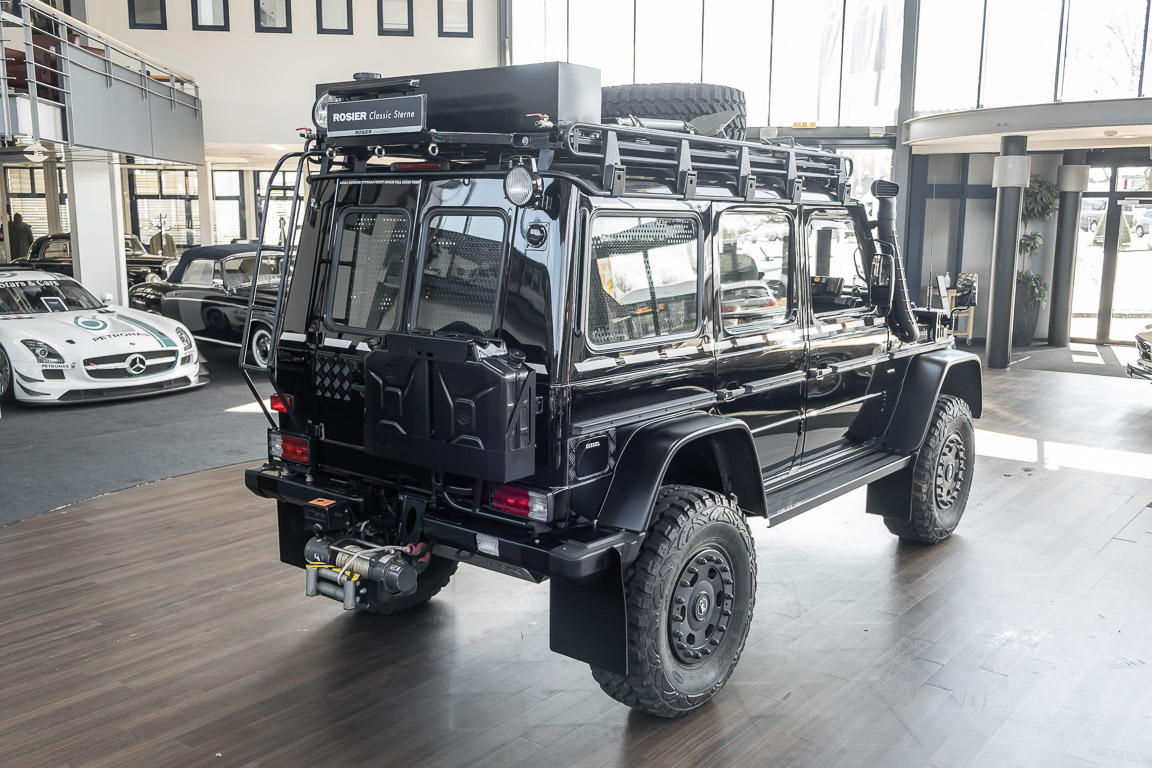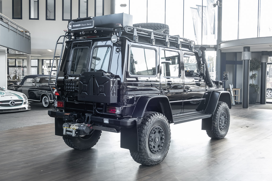 We are pleased to offer you this very special G model. To mark the 30th birthday of the Mercedes-Benz G, the special edition "G Edition Pur" was released in 2009. The reflection back to the roots was well received. Enthusiasts, collectors and G fans alike were enthusiastic about this workhorse. An entrepreneur, car enthusiast and avid hunter from Oldenburg's Ammerland region had the vehicle rebuilt by off-road specialist ORC after it was purchased. Portal axles from the G 63 AMG 6x6 as well as the tire pressure control system and Hutchingson beadlock rims are just the highlights of a conversion in which over €100,000 was invested. An integrated gun cabinet, winches at the front and rear of the vehicle and a satellite phone make the vehicle the ideal companion for all projects - whether onroad, offload, in the forest or in the desert! A unique piece that rightly deserves the title "off-road legend". Welcome to ROSIER Classic Stars.