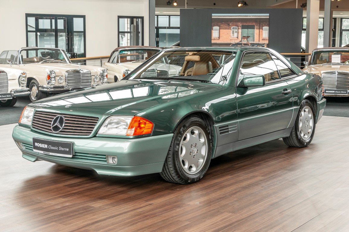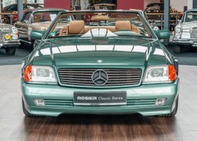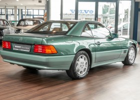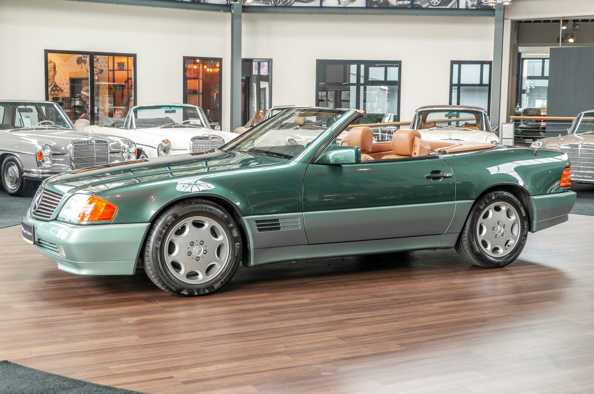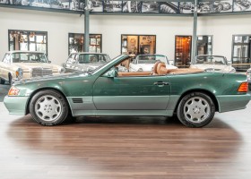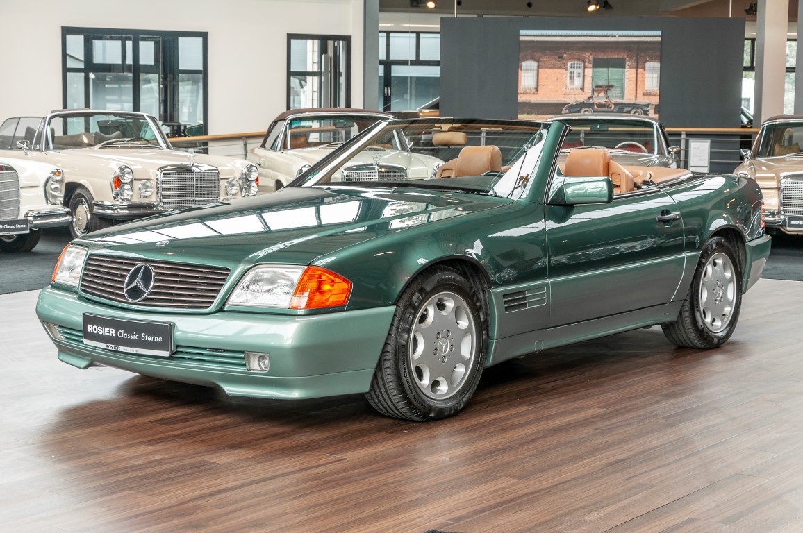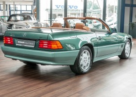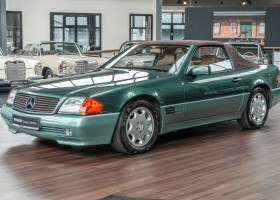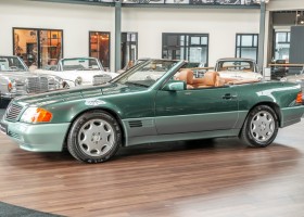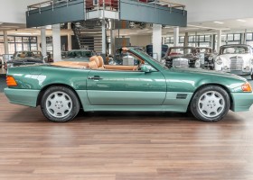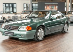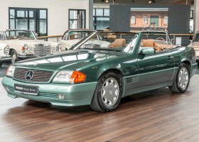 Ein traumschöner SL500 aus der so beliebten R129 Serie in hocheleganter Farbkombination. Malachitgrün in Verbindung mit Lederausstattung in „Dattel“ und dunkelbraunem Soft-Top, dazu eine reichhaltige Ausstattung, so hatte ein Unternehmer aus Mönchengladbach den Traumroadster bestellt. Am 25. Juni 1992 wurde das Fahrzeug geliefert. Der Wagen wurde wenig gefahren, erhielt aber regelmäßig Kundendienste, damit die Einsatzbereitschaft zu jeder Zeit gewährleistet war. In 2011 wurde der Wagen auf die Ehefrau umgeschrieben und blieb in Ihrem Besitz weiter bis 2016. Als der Wagen verkauft wurde, hatte er gerade einmal 22.000km gelaufen. Ein Norddeutscher Sammler erwarb den eleganten Roadster und fuhr ihn etwa 4.000km jährlich. Nun soll der Wagen in eine neue „Gute Hand“ abgegeben werden. Er hat gerade einmal 32.000 Originalkilometer gelaufen, ist bestens gepflegt und ein Klassiker der Zukunft. Jetzt ist er dank Katalysator schon günstig zu fahren und in nur 35 Monaten kann er das so begehrte H-Kennzeichen bekommen, mit allen Vorzügen eines solchen. Gerne zeigen wir Ihnen diesen traumschönen SL500 Roadster hier in unserer Ausstellung in Oldenburg. Vielleicht kommen wir ja ins Geschäft.