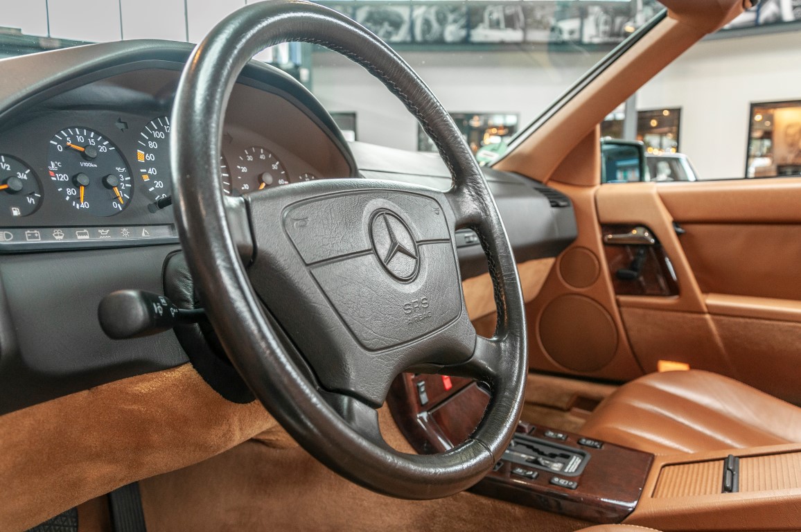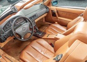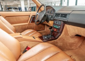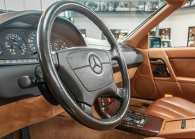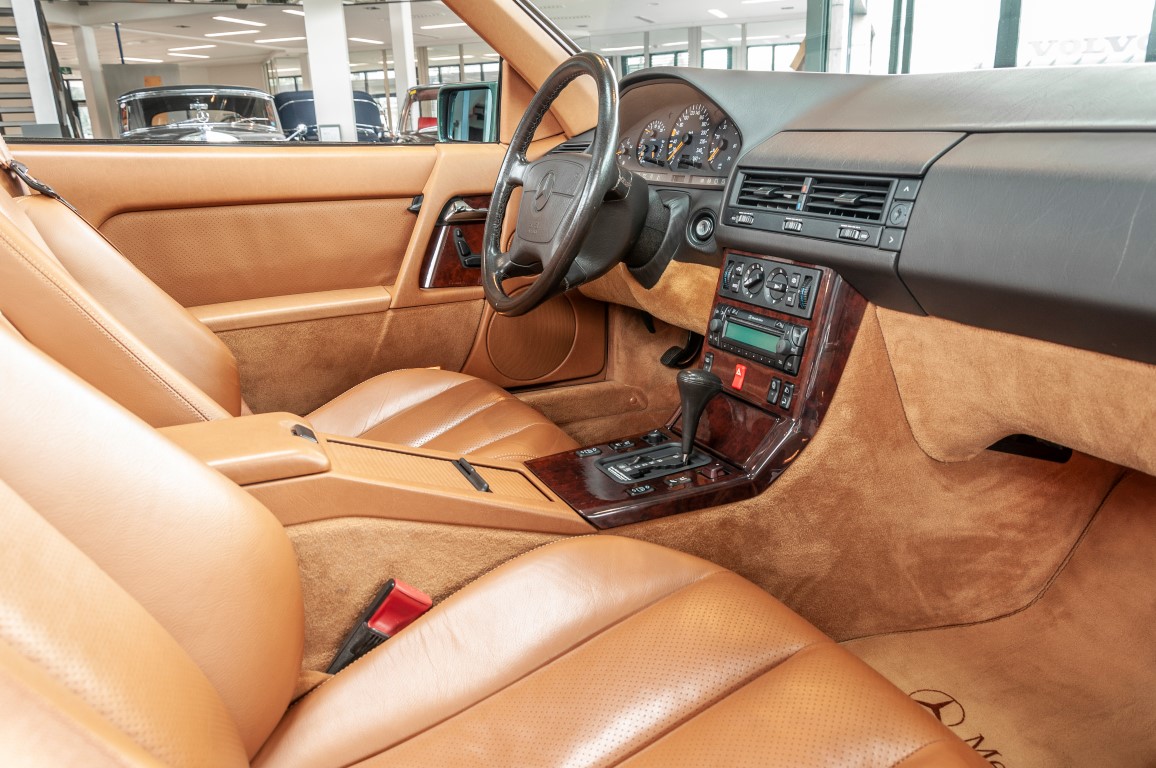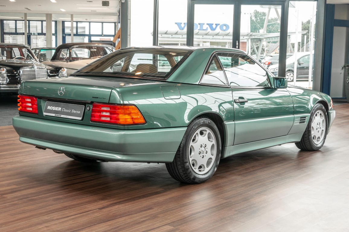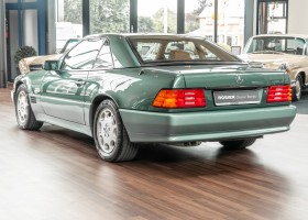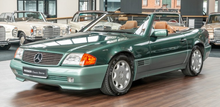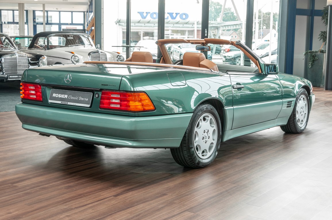 Ein traumschöner SL500 aus der so beliebten R129 Serie in hocheleganter Farbkombination. Malachitgrün in Verbindung mit Lederausstattung in „Dattel“ und dunkelbraunem Soft-Top, dazu eine reichhaltige Ausstattung, so hatte ein Unternehmer aus Mönchengladbach den Traumroadster bestellt. Am 25. Juni 1992 wurde das Fahrzeug geliefert. Der Wagen wurde wenig gefahren, erhielt aber regelmäßig Kundendienste, damit die Einsatzbereitschaft zu jeder Zeit gewährleistet war. In 2011 wurde der Wagen auf die Ehefrau umgeschrieben und blieb in Ihrem Besitz weiter bis 2016. Als der Wagen verkauft wurde, hatte er gerade einmal 22.000km gelaufen. Ein Norddeutscher Sammler erwarb den eleganten Roadster und fuhr ihn etwa 4.000km jährlich. Nun soll der Wagen in eine neue „Gute Hand“ abgegeben werden. Er hat gerade einmal 32.000 Originalkilometer gelaufen, ist bestens gepflegt und ein Klassiker der Zukunft. Jetzt ist er dank Katalysator schon günstig zu fahren und in nur 35 Monaten kann er das so begehrte H-Kennzeichen bekommen, mit allen Vorzügen eines solchen. Gerne zeigen wir Ihnen diesen traumschönen SL500 Roadster hier in unserer Ausstellung in Oldenburg. Vielleicht kommen wir ja ins Geschäft.